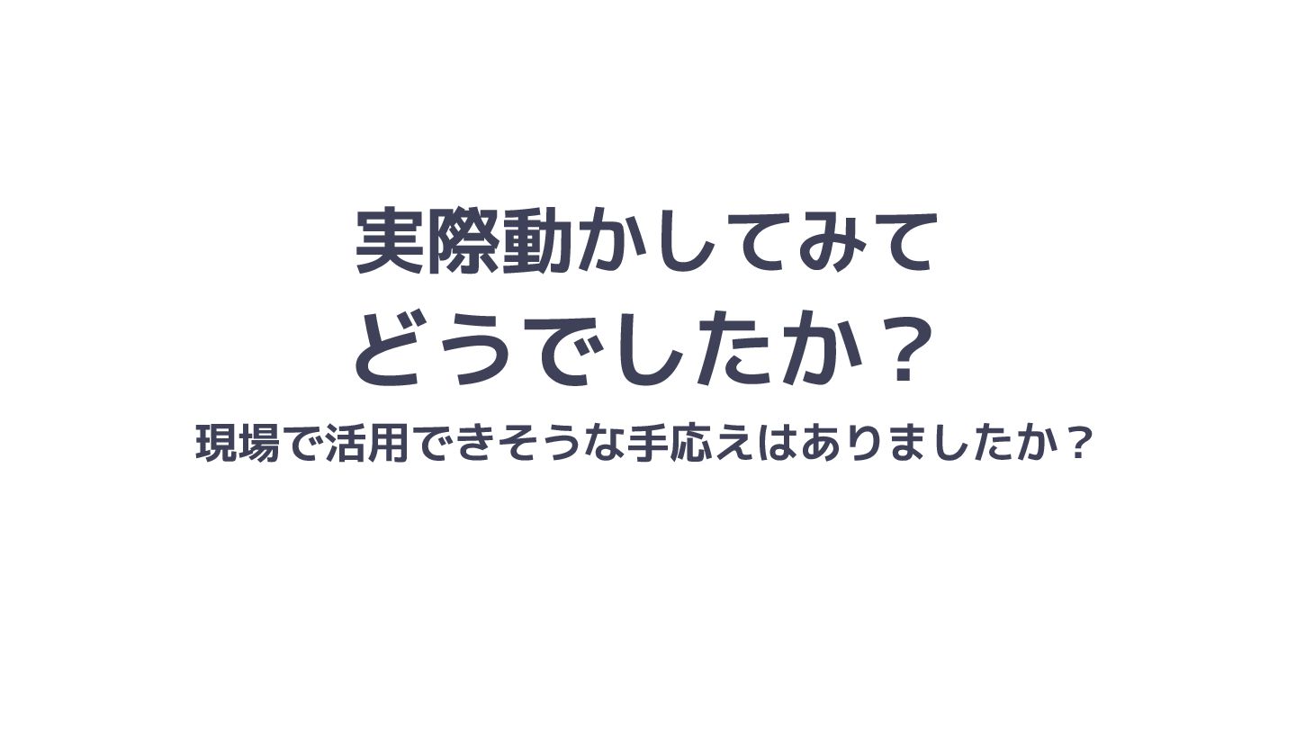 実際動かしてみて どうでしたか? 現場で活用できそうな手応えはありましたか?