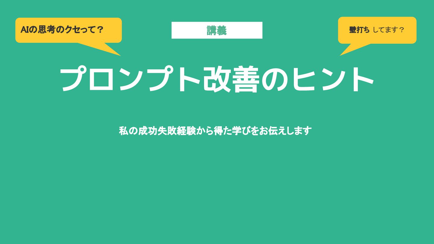 プロンプト改善のヒント 講義 私の成功失敗経験から得た学びをお伝えします AIの思考のクセって? 壁打ち してます?