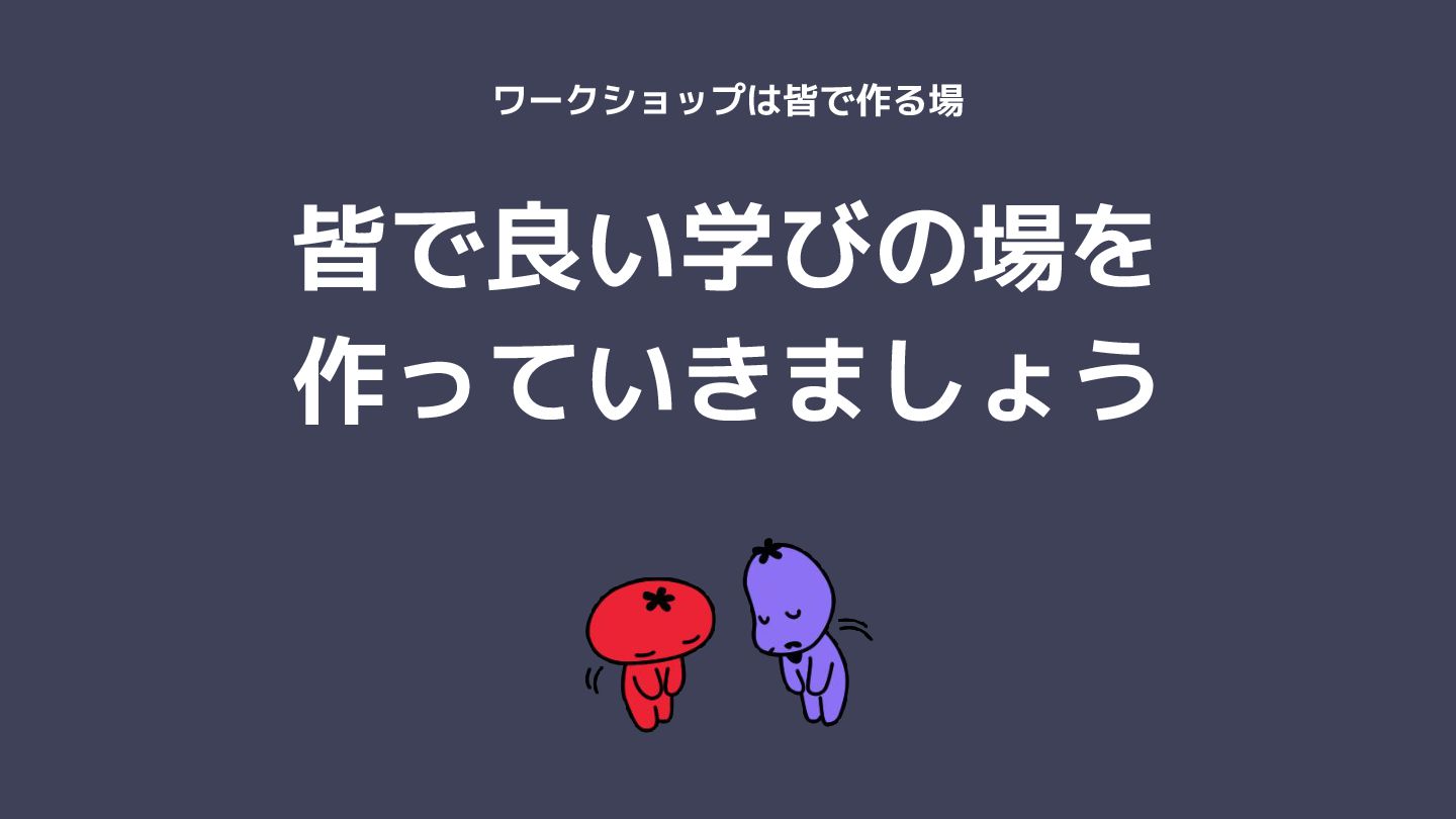 皆で良い学びの場を 作っていきましょう ワークショップは皆で作る場