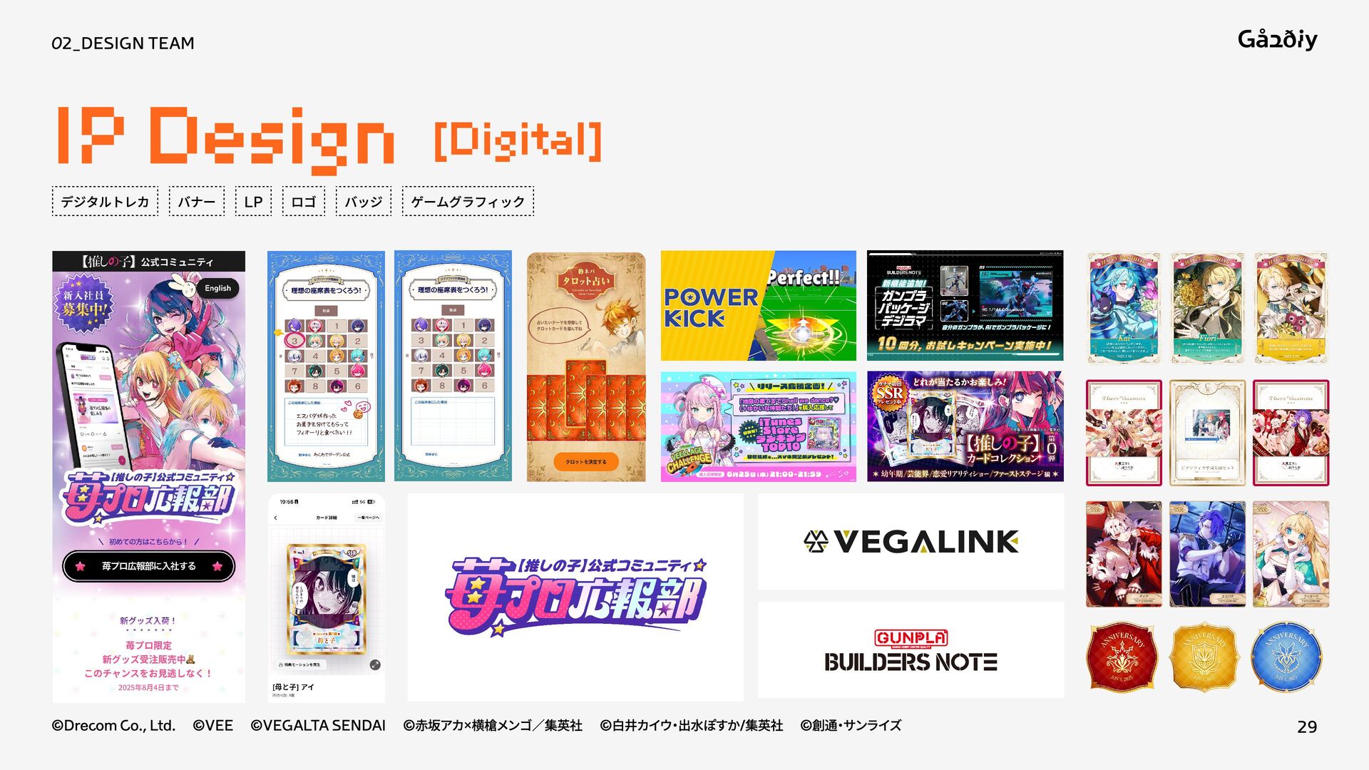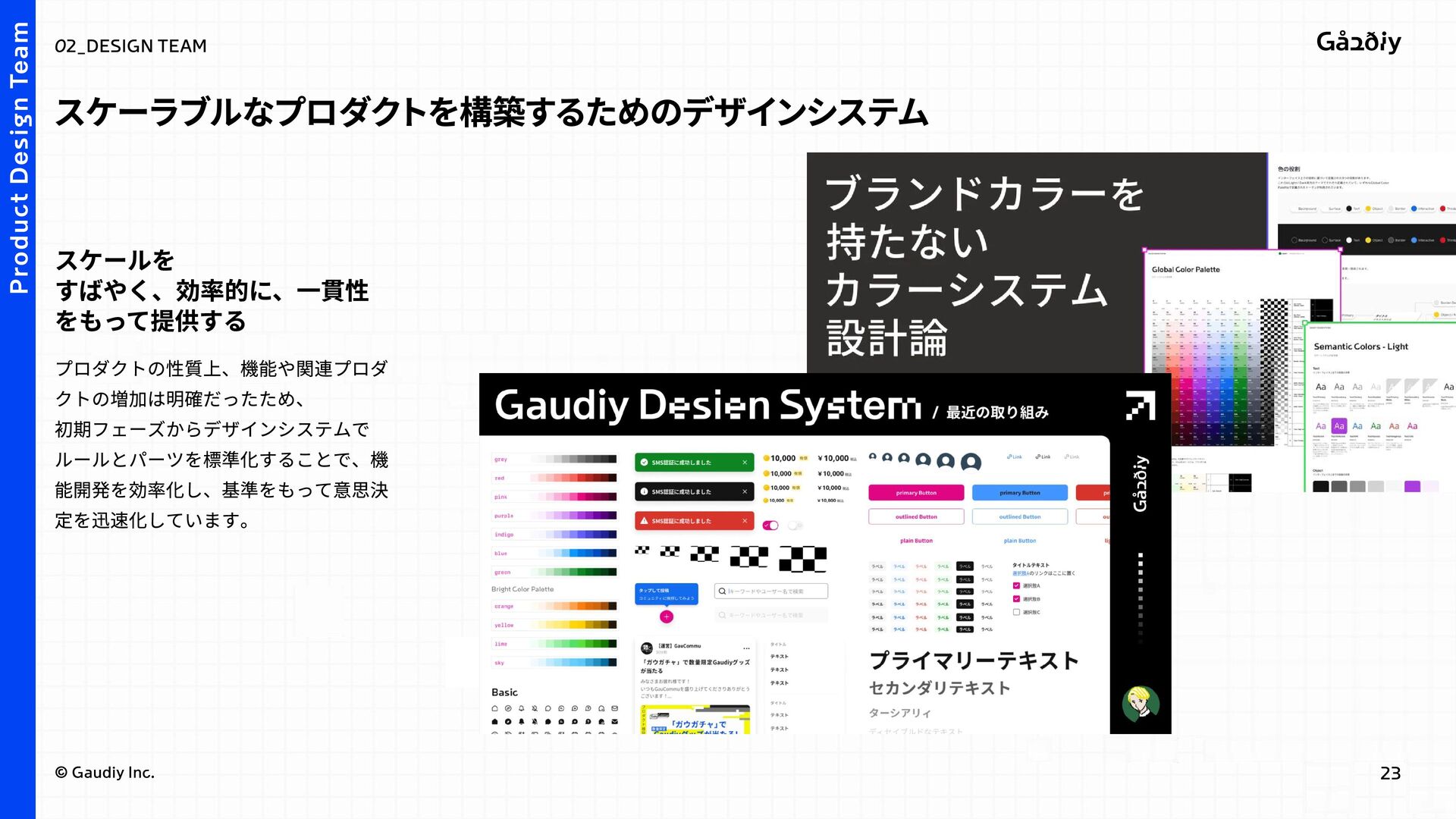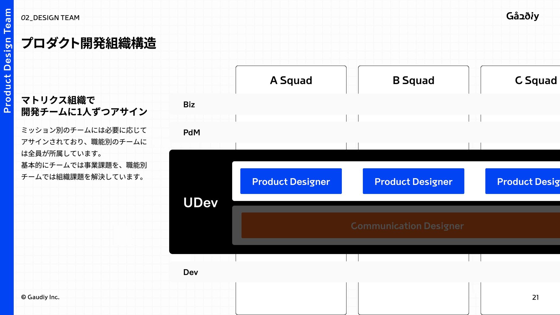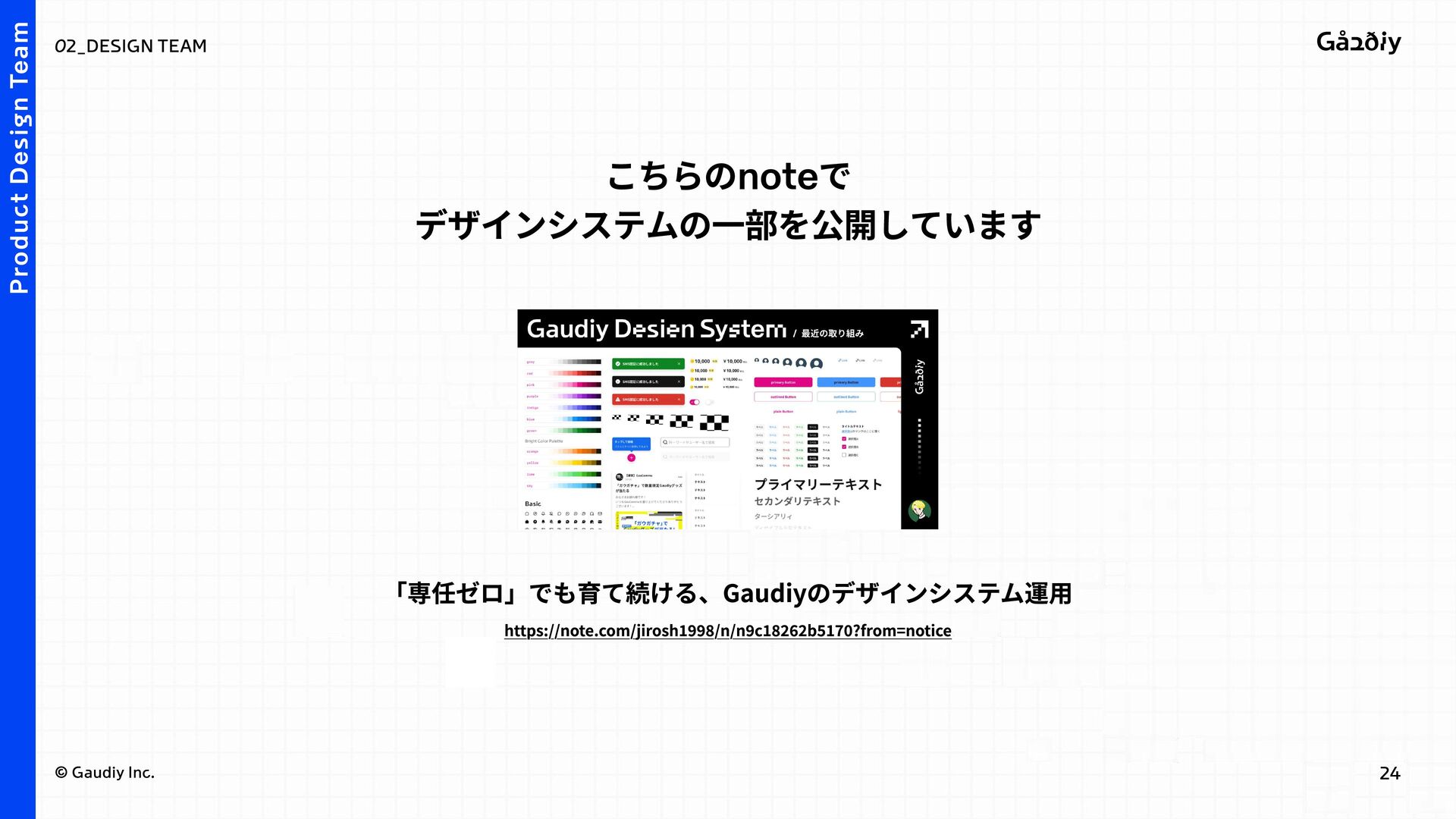 案件と並行して、 コミュニケーションデ ザインチーム横断でも情報共有やワークフロー整備を行い、 チーム内でのより良い制作環境づく りを行なっています。 施策 定例ミーティングや勉強会、デザインレビュー チームビルディング活動や文化づくり 社内ツールや発表会など 定例ミーティ ングや勉強会 スクラムイベント,All Hands,Monthly Doyaなどの 定例を実施し、各デザイナーの取り組んでいることを可 視化しています。 チームビルディ ング 必要な ワーク フローの 導入や ドキュ メントの 拡充に チーム メン バー 自ら取り組 み、チーム 全体のデザイン 品質の ボトム アップに努めています。 社内ツール Sla ckを 基本としな がら、 Not ionでの プロジェクト 管理、 制作にはFigmaとAdo be Creat ive Clo udの 両方を 使用 しています。 Figma Ado be Ill ust rato r Ado be Photosho p Chat GPT