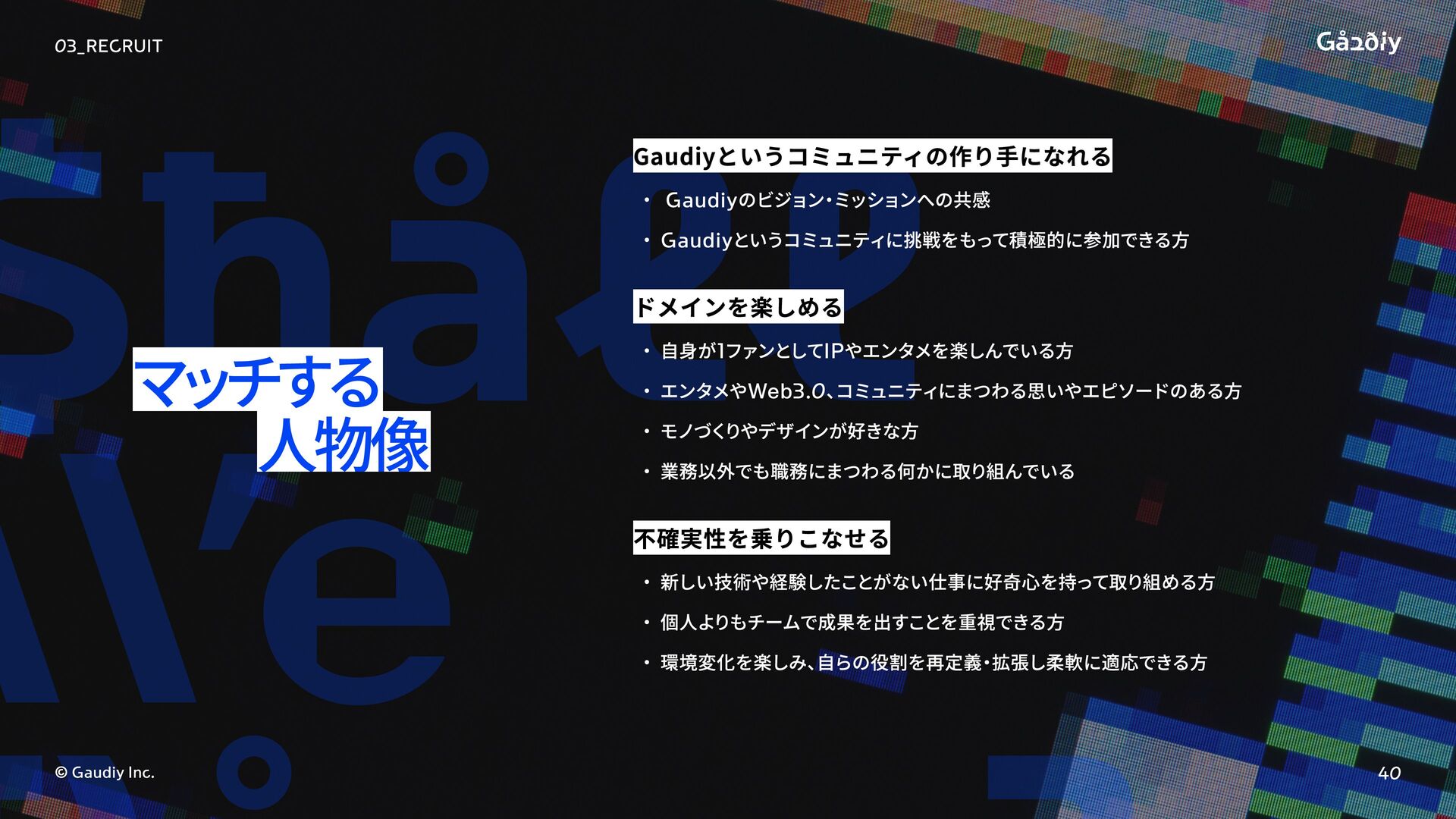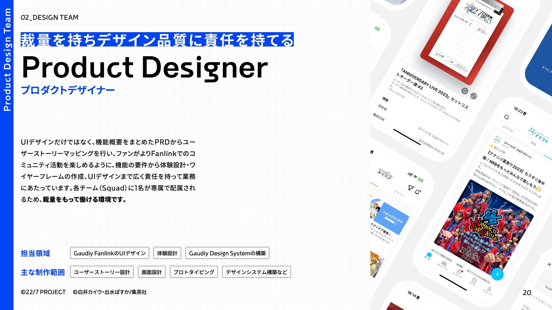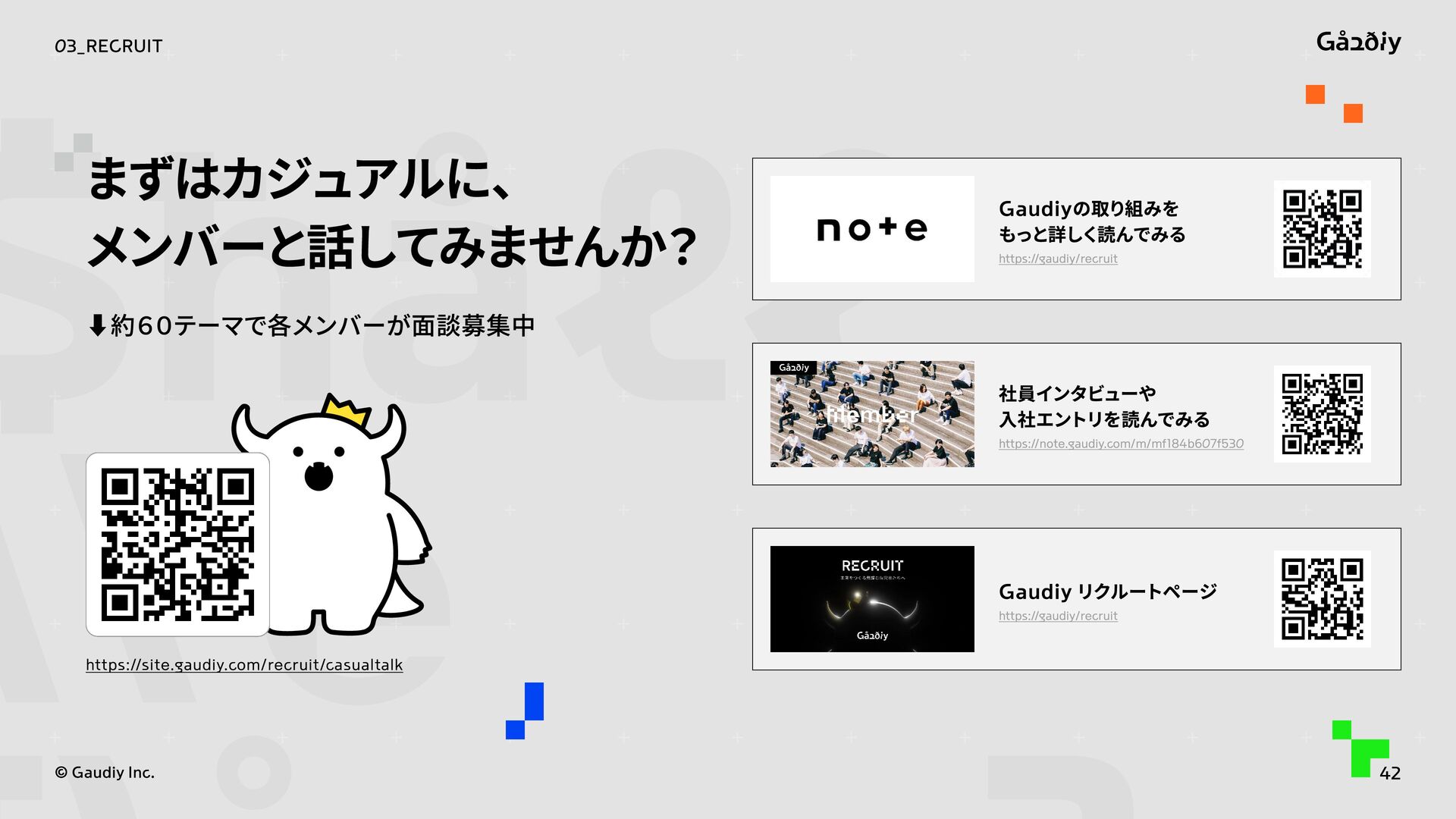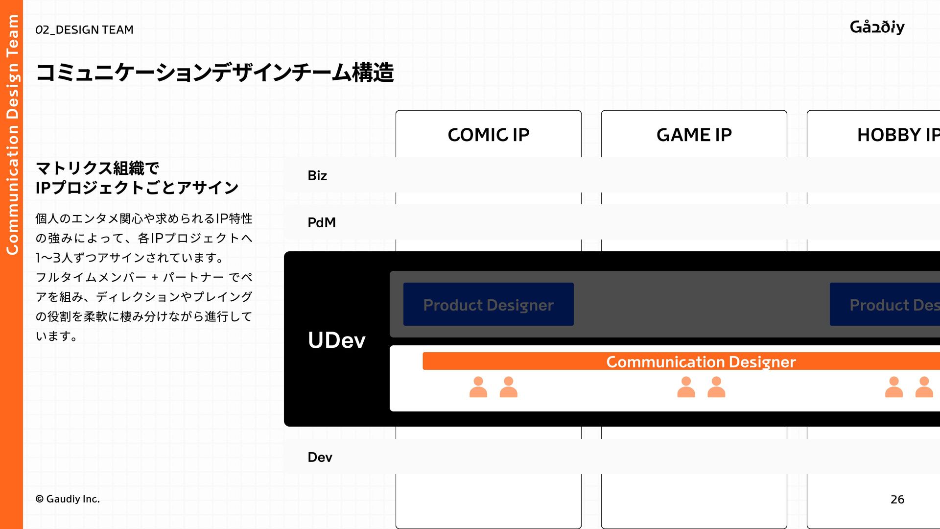 案件と並行して、 コミュニケーションデ ザインチーム横断でも情報共有やワークフロー整備を行い、 チーム内でのより良い制作環境づく りを行なっています。 施策 定例ミーティングや勉強会、デザインレビュー チームビルディング活動や文化づくり 社内ツールや発表会など 定例ミーティ ングや勉強会 スクラムイベント,All Hands,Monthly Doyaなどの 定例を実施し、各デザイナーの取り組んでいることを可 視化しています。 チームビルディ ング 必要な ワーク フローの 導入や ドキュ メントの 拡充に チーム メン バー 自ら取り組 み、チーム 全体のデザイン 品質の ボトム アップに努めています。 社内ツール Sla ckを 基本としな がら、 Not ionでの プロジェクト 管理、 制作にはFigmaとAdo be Creat ive Clo udの 両方を 使用 しています。 Figma Ado be Ill ust rato r Ado be Photosho p Chat GPT