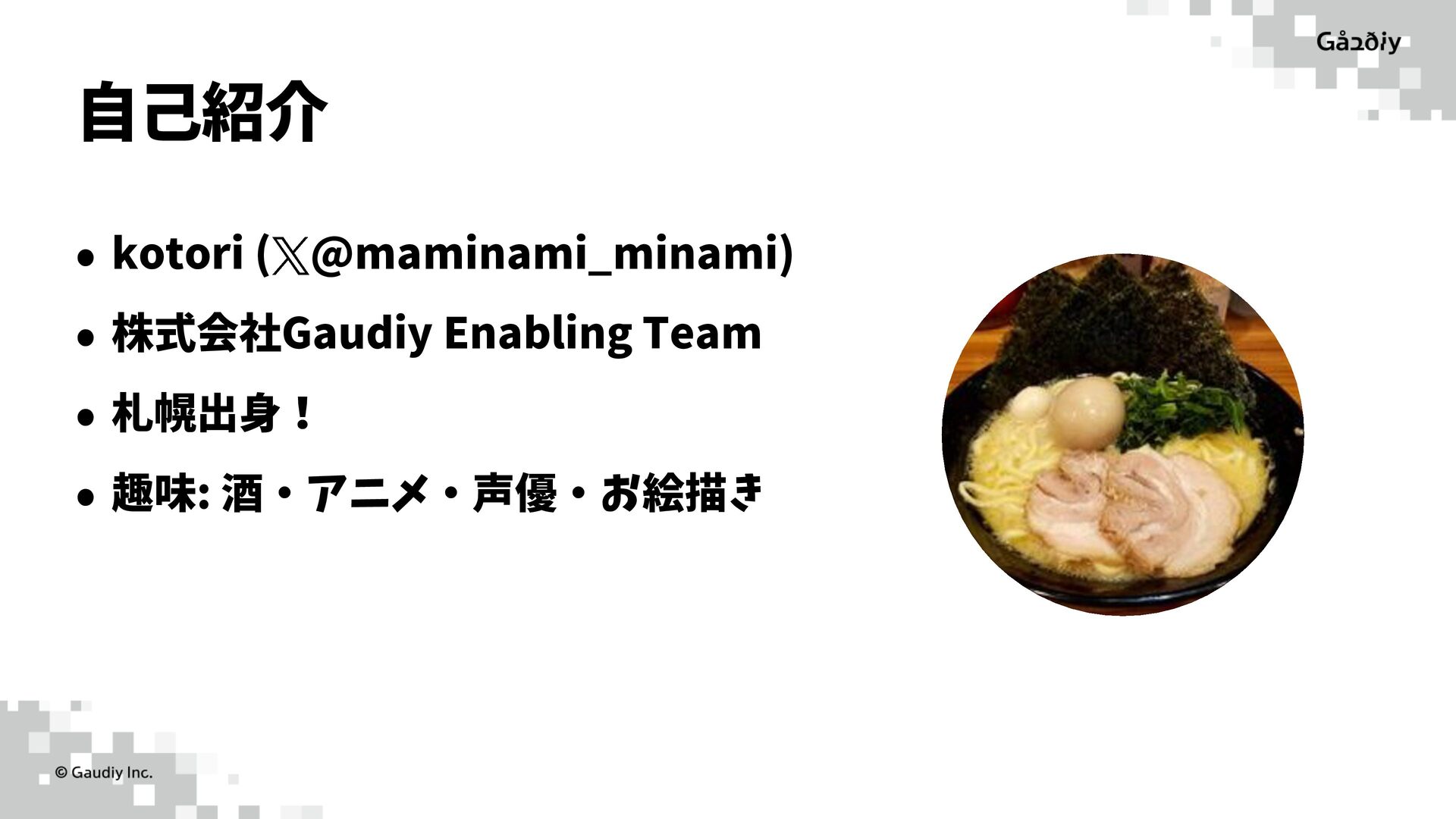自己紹介 • kotori ( @maminami_minami) • 株式会社Gaudiy Enabling Team •