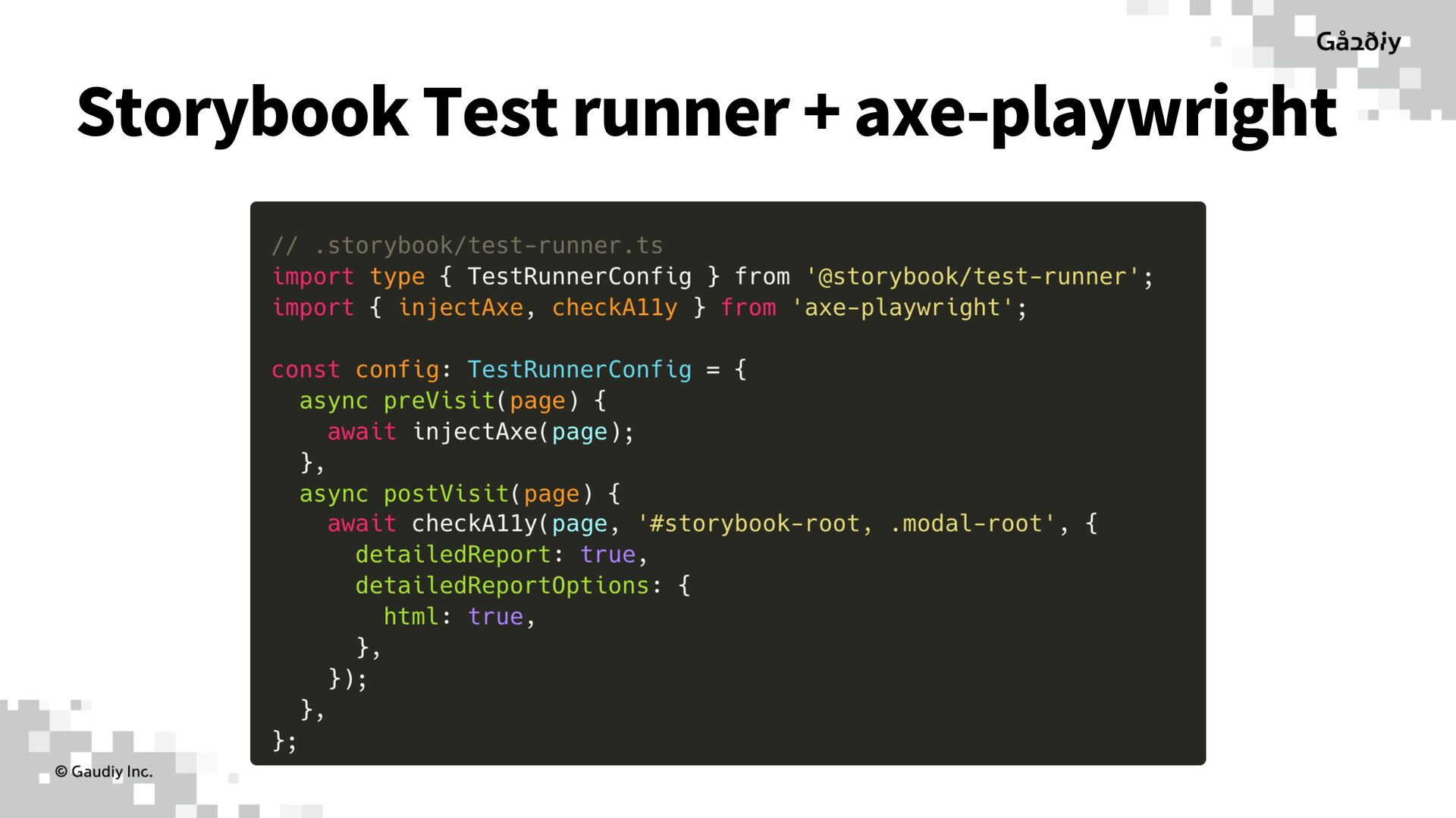 Storybook Test runner + axe-playwright • Storybook Test runner •