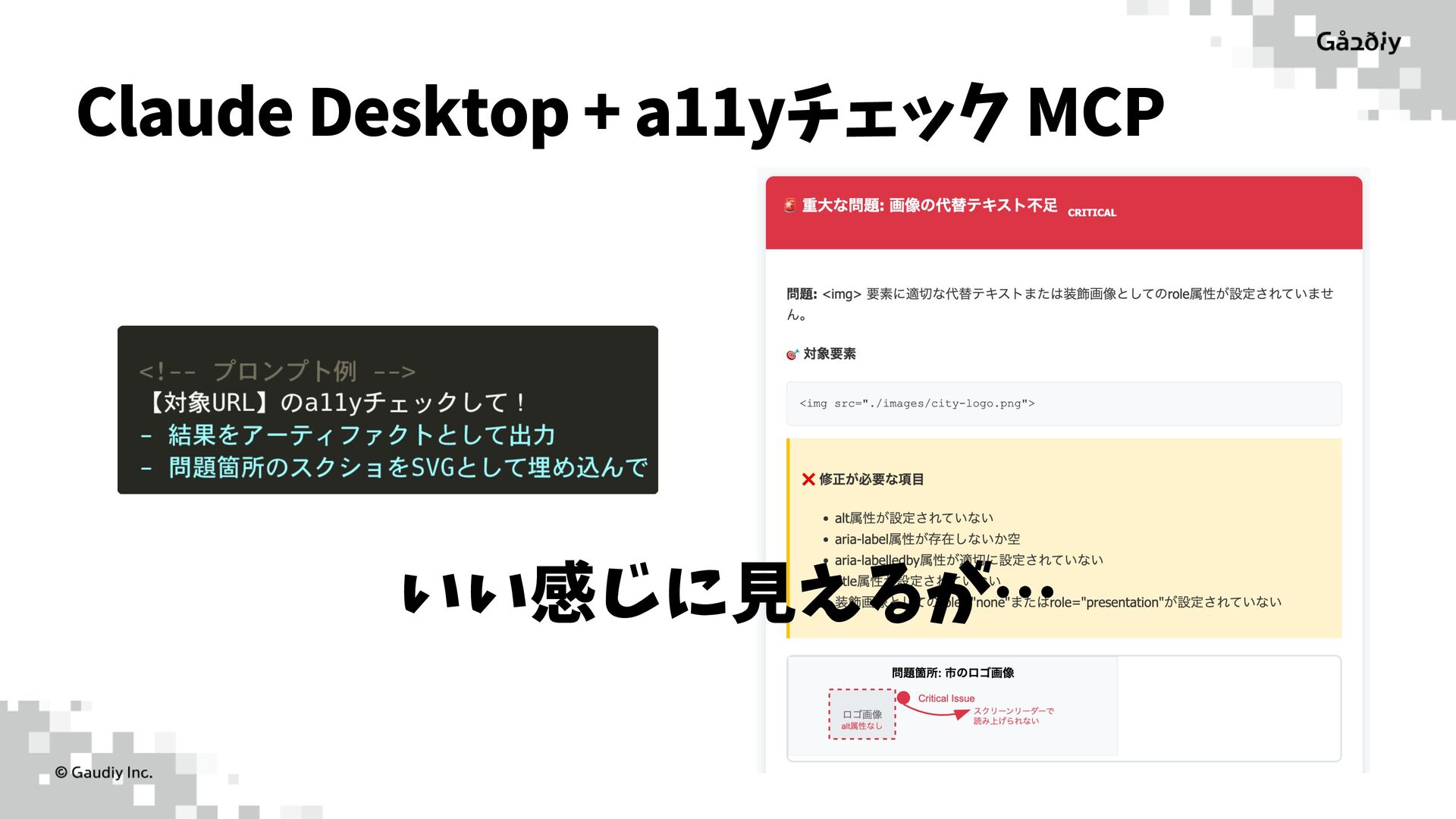Claude Desktop + a11yチェック MCP いい感じに見えるが…