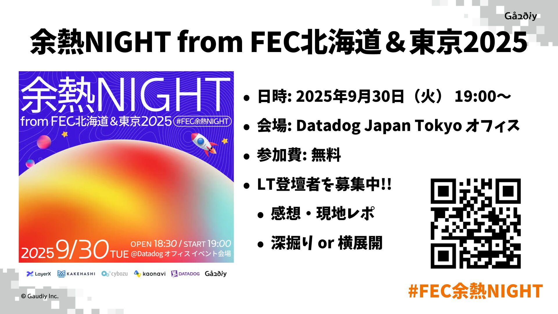 余熱NIGHT from FEC北海道&東京2025 • 日時: 2025年9月30日(火) 19:00〜 • 会場: Datadog