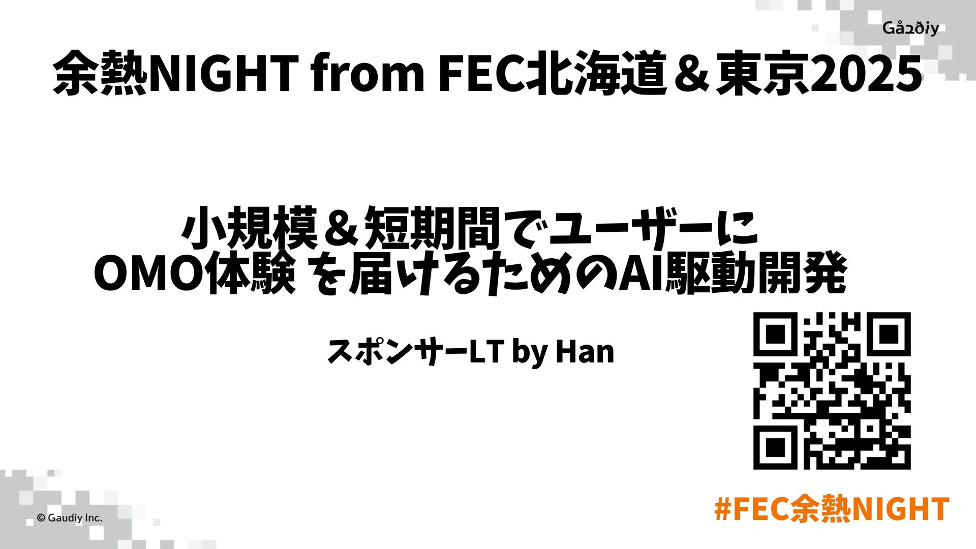 余熱NIGHT from FEC北海道&東京2025 スポンサーLT by Han 小規模&短期間でユーザーに OMO体験 を届けるためのAI駆動開発 #FEC余熱NIGHT