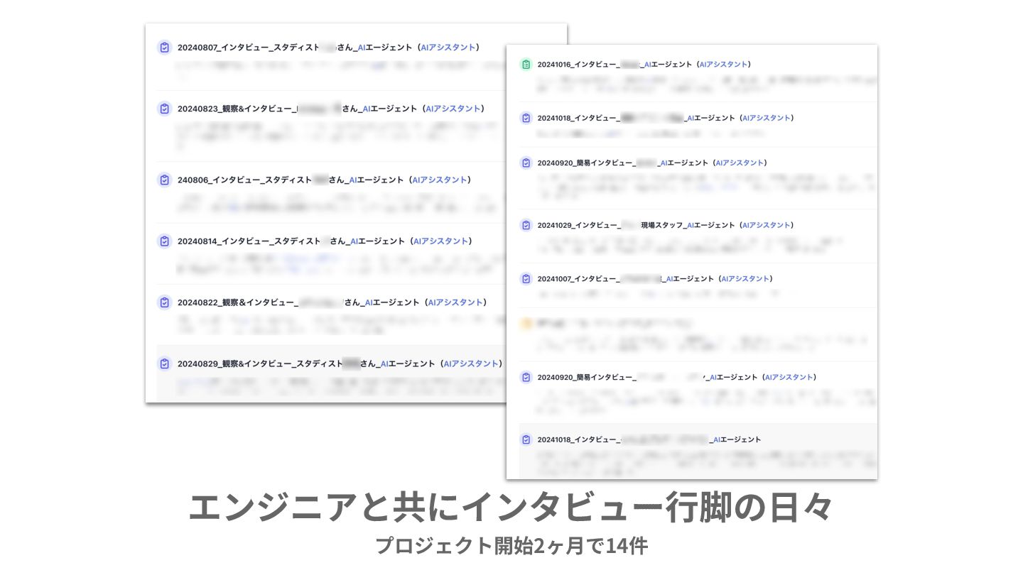 エンジニアと共にインタビュー⾏脚の⽇々 プロジェクト開始2ヶ⽉で14件