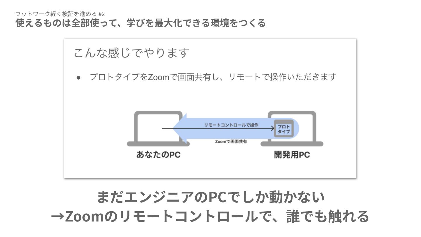 まだエンジニアのPCでしか動かない →Zoomのリモートコントロールで、誰でも触れる フットワーク軽く検証を進める #2 使えるものは全部使って、学びを最⼤化できる環境をつくる