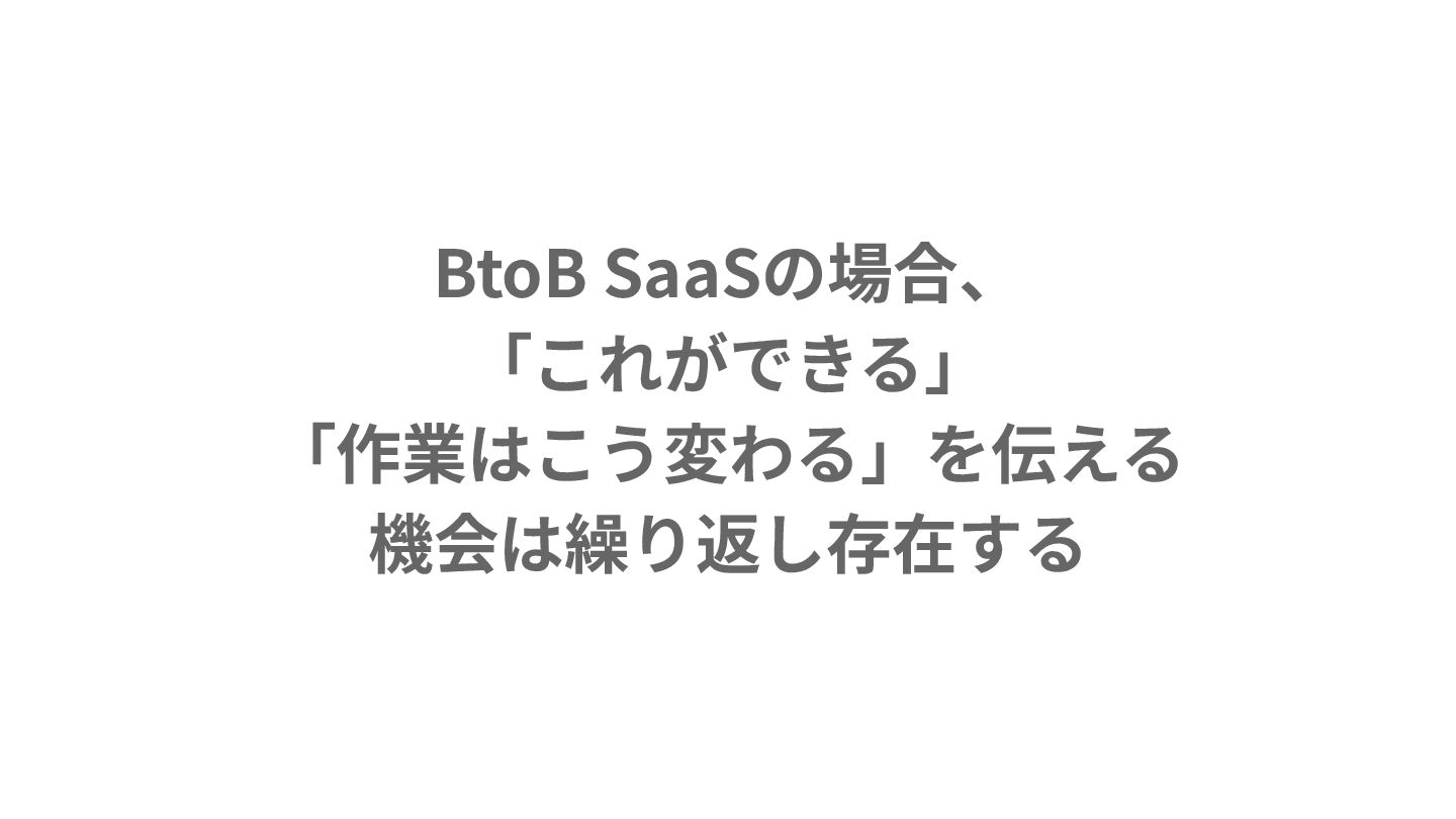 BtoB SaaSの場合、 「これができる」 「作業はこう変わる」を伝える 機会は繰り返し存在する