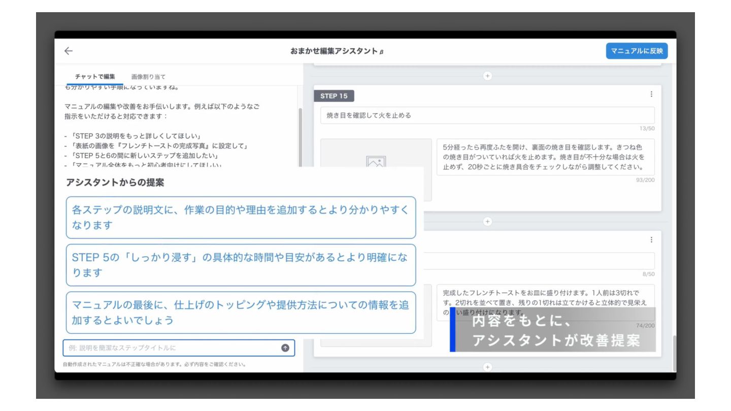 🤗 AIアシスタントにチャットで 指⽰するだけでマニュアルが作れます!