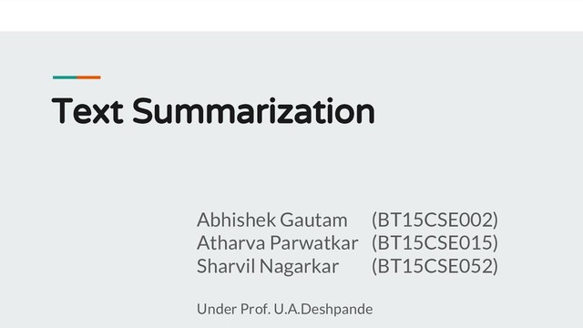 Phase 2 evaluation of text summarization final year project under professor U.A. Deshpande in collaboration with TCS presentation.