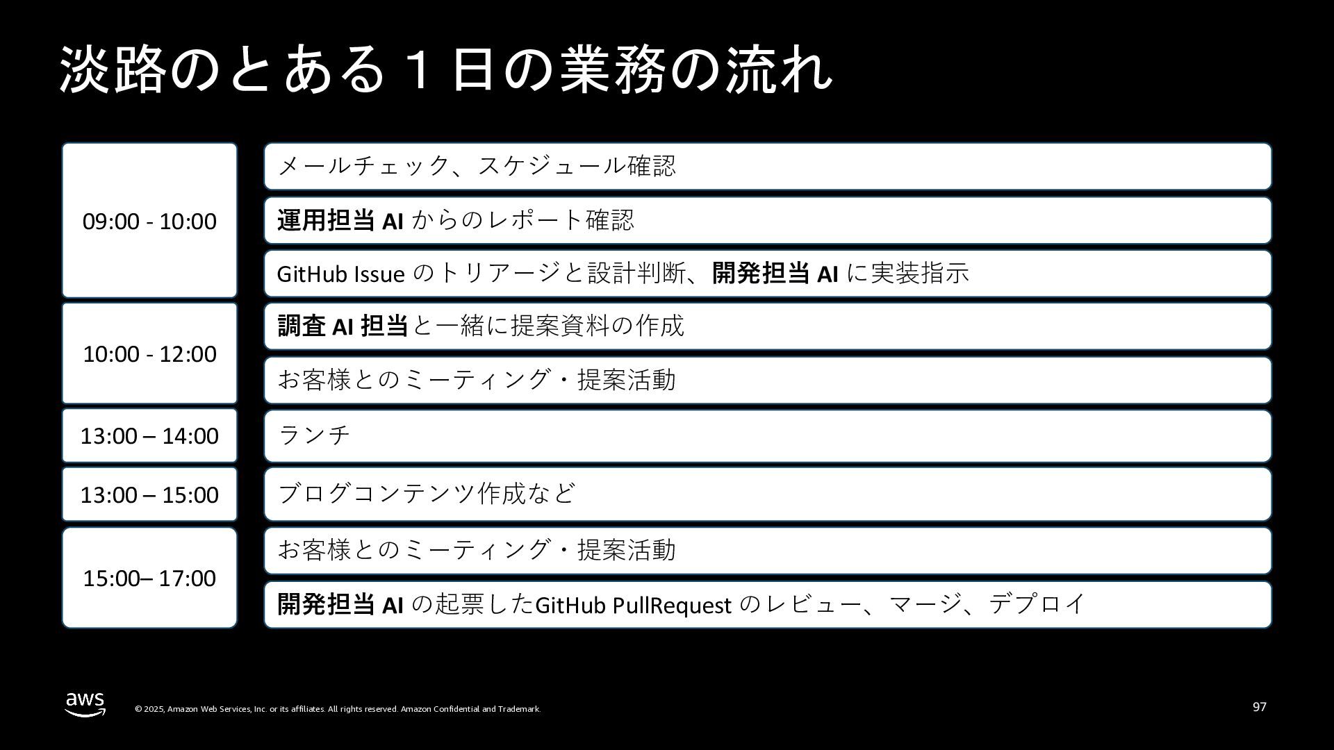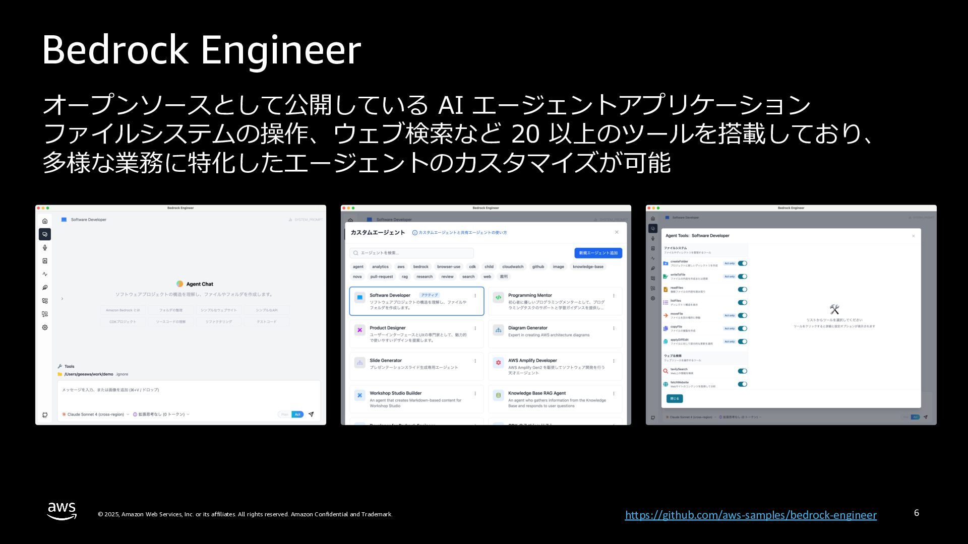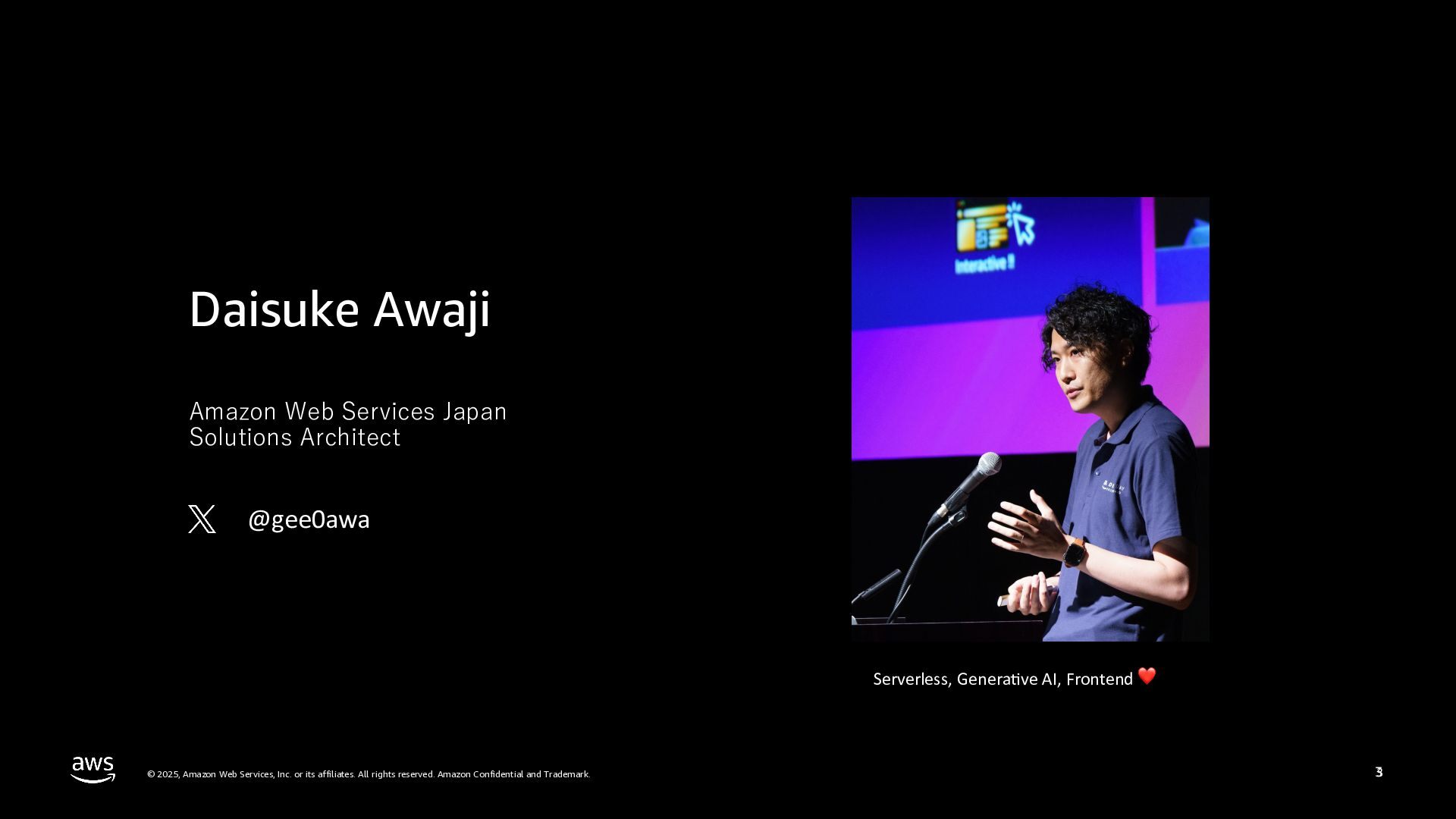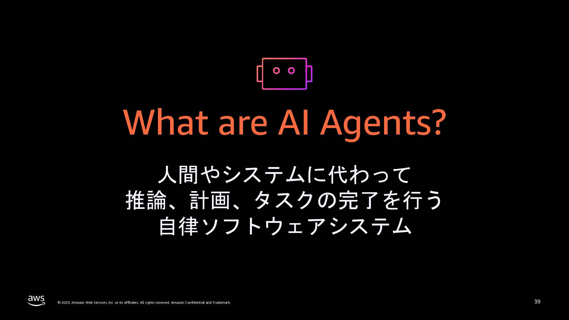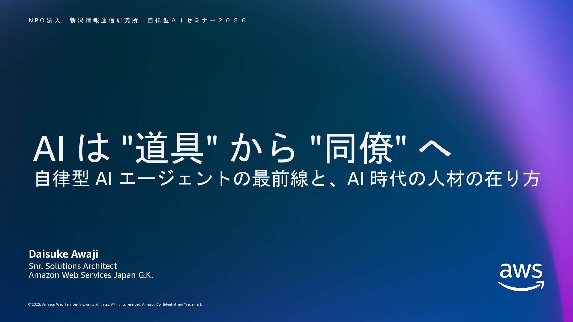 本セッションでは、AWSのシニアソリューションアーキテクトとして数百社の技術支援に携わりながら、自らもAIエージェントアプリケーション「Bedrock Engineer」をオープンソースとして開発・公開し続けてきた淡路が、「理論」と「実践」の両面から、AIエージェントの現在地と未来を解き明かします。