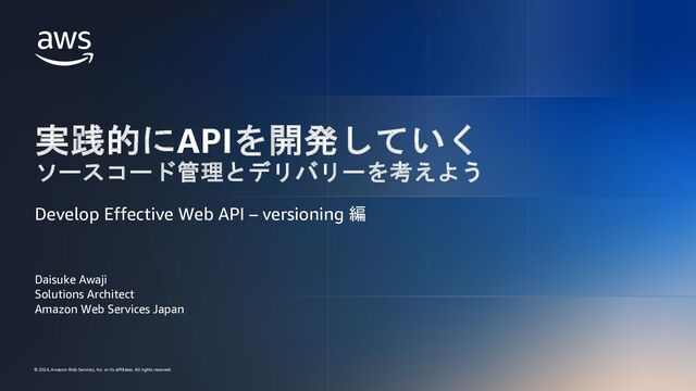 its affiliates. All rights reserved. API Gateway を IaC 管理する要素(実装イメージ) 26 API 定義 AWS CDK paths: "/users": get: description: get users parameters: - name: name in: query required: false schema: type: string default: "World" responses: "200": content: "application/json": schema: $ref: "#/components/schemas/UsersResponse" x-amazon-apigateway-integration: type: "aws_proxy" httpMethod: "POST" uri: "arn:aws:apigateway:ap-northeast-1:lambda:path/2015-03- 31/functions/<Function Arn>/invocations" const fn = new lambda.Function(this, ”Lambda", { runtime: lambda.Runtime.NODEJS_20_X, code: lambda.Code.fromAsset("lambda"), handler: "index.handler", }); const api = new apigateway.SpecRestApi(this, "users-api", { apiDefinition: apigateway.ApiDefinition.fromAsset("path-to-file.json"), }); API Gateway 配下に接続するリソース(AWS Lambda など)を宣言する が、実際は CDK で定義した Lambda を参照させたい
