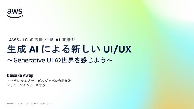 rights reserved. Claude Artifacts の Bedrock 版の実装例 ユーザの入力に応じて、HTMLのプレビューやグラフの描画を出し分ける Open Artifacts for Amazon Bedrock 31 https://github.com/aws-samples/open_artifacts_for_bedrock