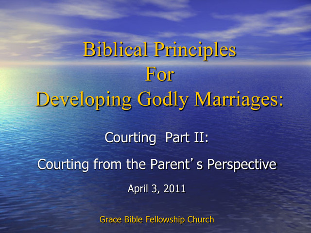 Courting? • Many different factors are involved. • Parents must be very discerning and wise – Timing – is this the right time – Age – of child and potential partner – Maturity – of child and potential partner – Goals and Plans • Ministry, Life, Career, Family, etc. – Observation of Friendship Development • Guy must be prepared to meet with Her Dad. 24