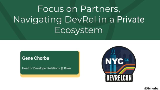 Talk by Gene Chorba. Developer Relations is witnessing a pivotal shift towards a more targeted, relationship-driven strategy. This presentation will explore the strategic focus on Private/Partner Programs as a core DevRel strategy, diverging from the traditional grassroots community and API-centric approaches. We will dissect the rationale, benefits, and methodologies of prioritizing tier-1 partners, implementing access-limited programs, and cultivating high-value partnerships that drive mutual growth and innovation. Attendees will gain insights into crafting and executing a Private/Partner Program strategy that aligns with their organizational goals and the evolving landscape of developer engagement.