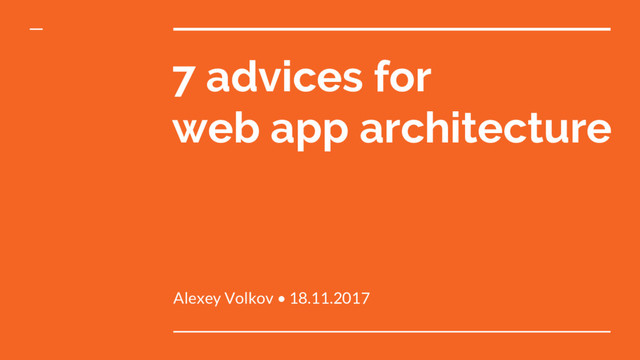 У доповіді буде розглянуто ряд принципів і просто хороших практик, які допоможуть вам в архітектурі веб-додатків. Ми не будемо прив’язуватися до конкретних фреймворків та бібліотек, а поговоримо про саму сутність речей.