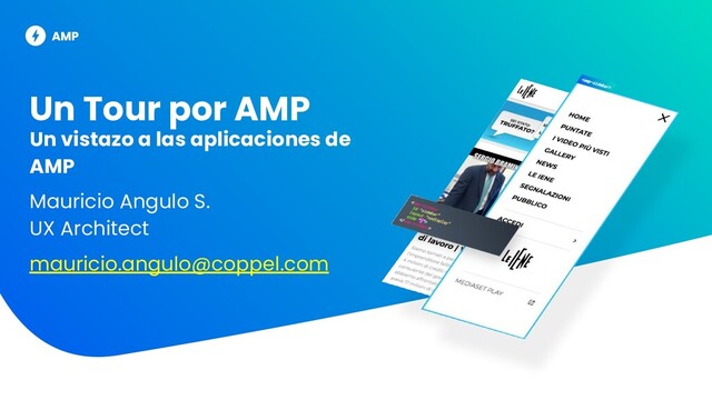 En esta presentación, Mauricio Angulo hace un recorrido por las principales aplicaciones de AMP (Accelerated Mobile Pages): AMP Websites, AMP Ads, AMP Mail y AMP Stories, así como algunos tips y herramientas para creadores,