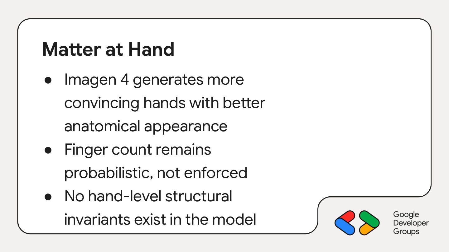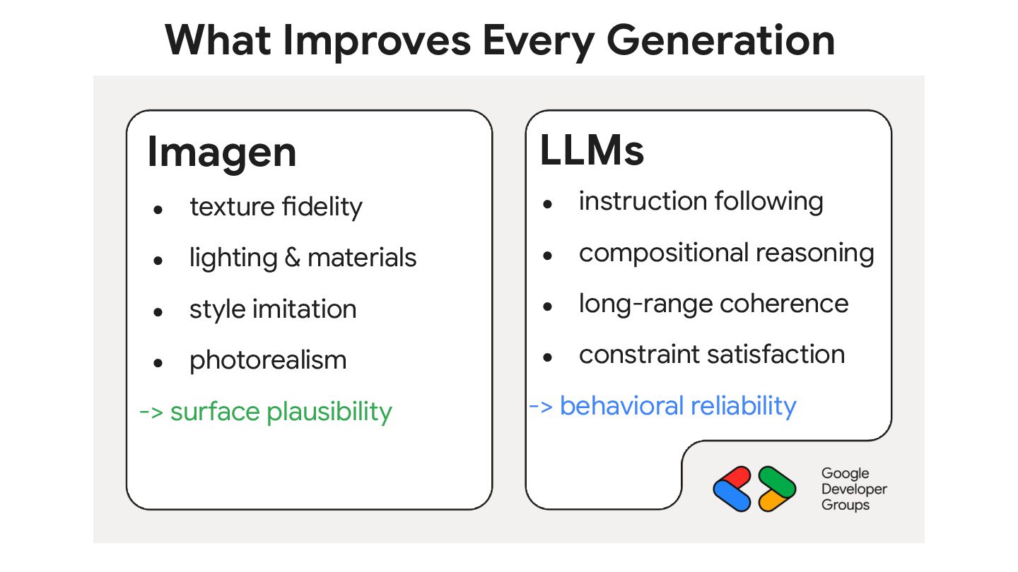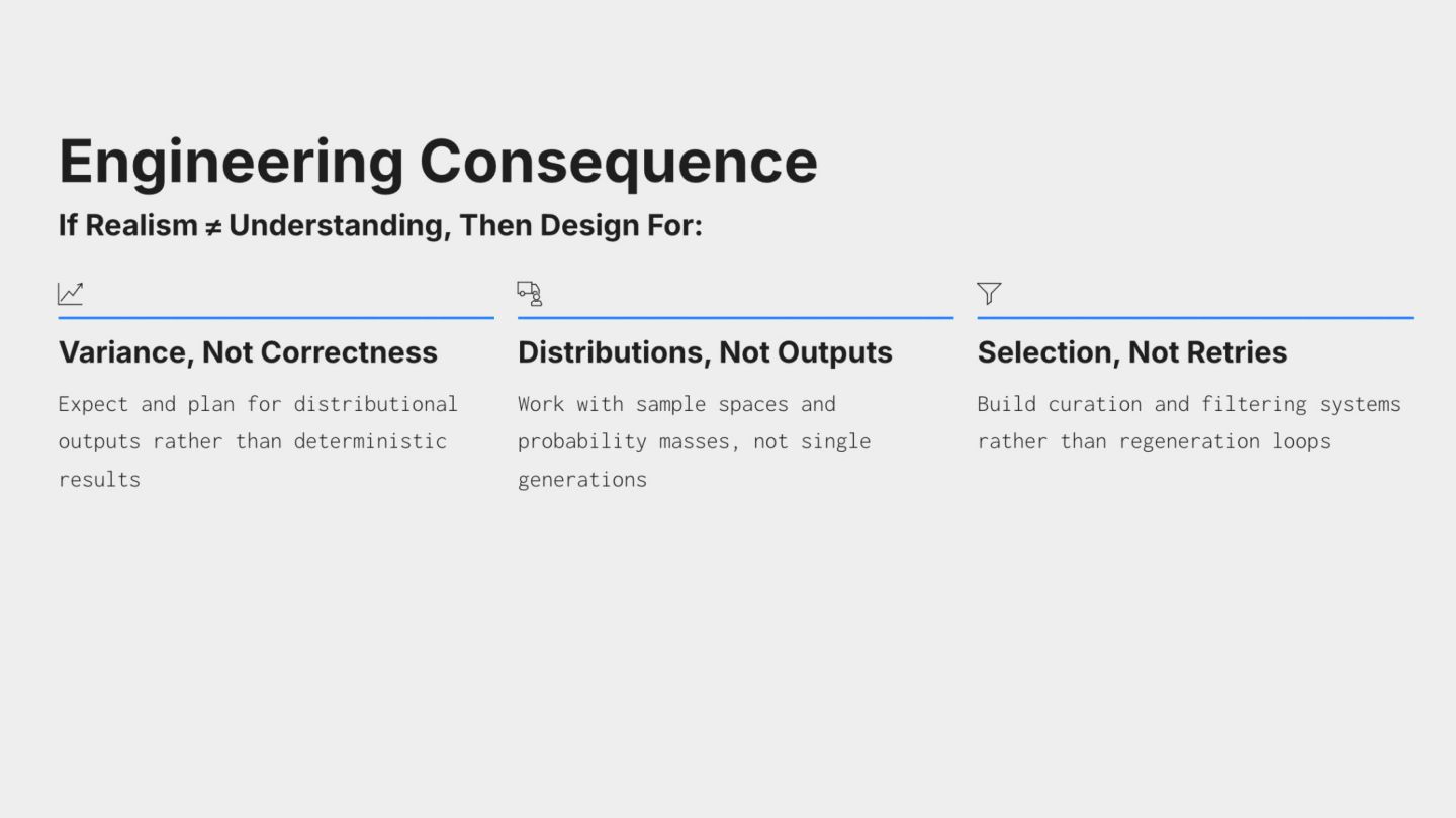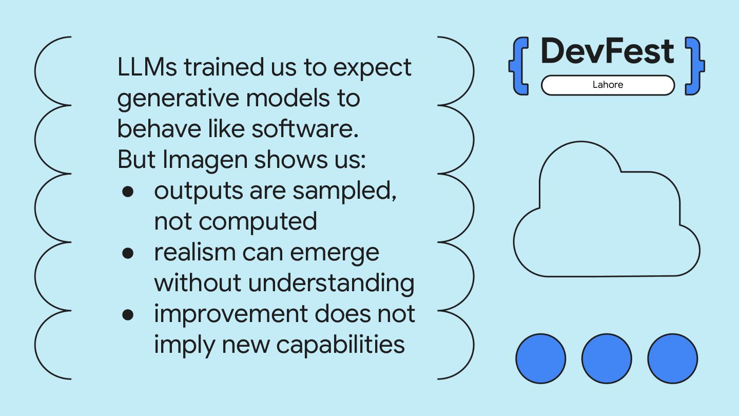 like software. But Imagen shows us: • outputs are sampled, not computed • realism can emerge without understanding • improvement does not imply new capabilities