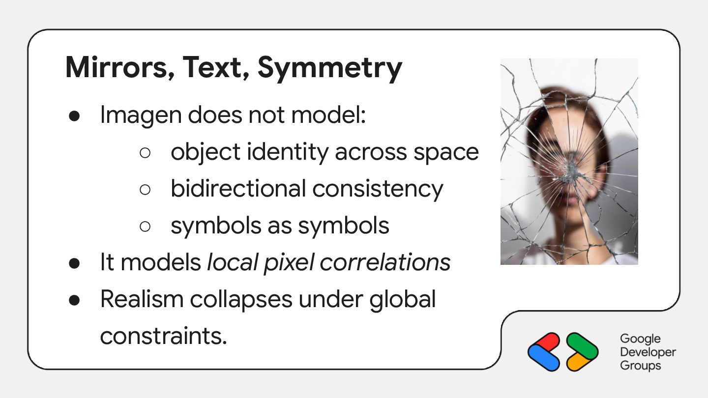 identity across space ◦ bidirectional consistency ◦ symbols as symbols • It models local pixel correlations • Realism collapses under global constraints.