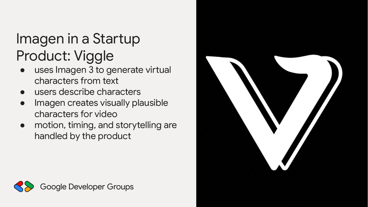 to generate virtual characters from text • users describe characters • Imagen creates visually plausible characters for video • motion, timing, and storytelling are handled by the product
