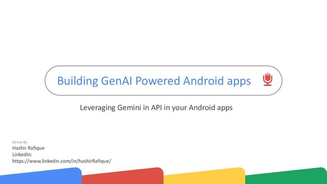in Android studio for beginners • Requires you to have your API Key • Adds all dependencies by itself • Generates the code for calling the modal API • Gives an initial code to practice prompting response from Gemini