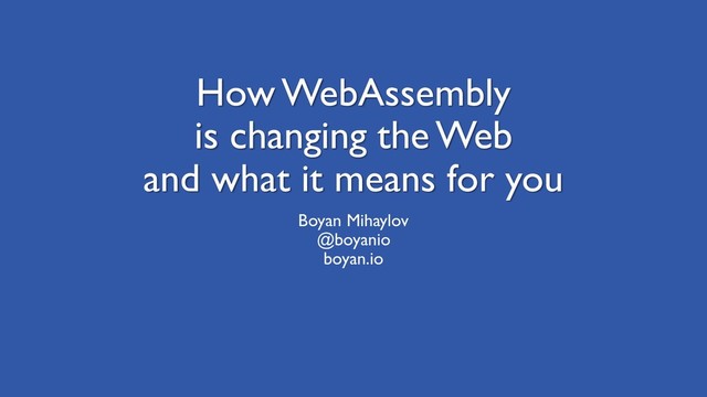 JavaScript has become the de-facto language for the Web, but complex applications like games, CAD modelling and video streaming require more. WebAssembly is a new language allowing us to compile statically-typed languages and run them in the browser and hence reusing code over the Web. It fills the gaps, that are weird to fill in with JavaScript, but will definitely have influence on the monopoly of JavaScript on the Web.
