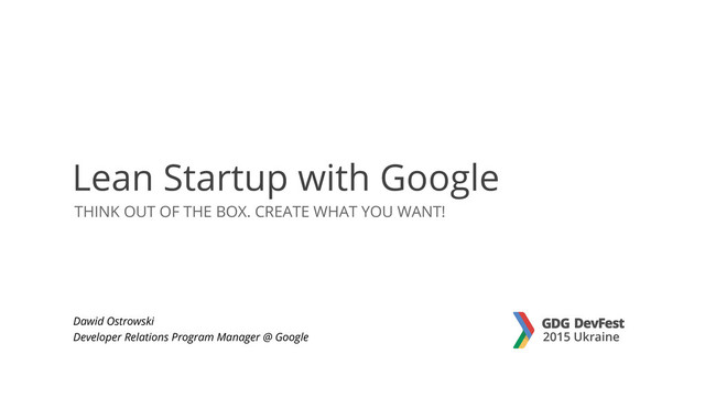 Presentation from GDG DevFest Ukraine 2015 - the biggest Google related event in the country. October 23-24, Lviv. Learn more at http://devfest.gdg.org.ua/