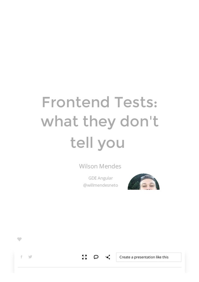 Slides are at: http://slides.com/willmendesneto/frontend-tests-what-they-dont-tell-you#/