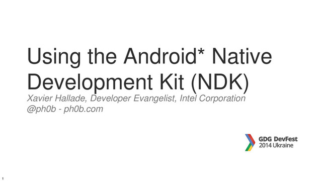 Build scripts/toolkit to incorporate native code in Android* apps via the Java Native Interface (JNI) Why use it? Performance e.g., complex algorithms, multimedia applications, games Differentiation app that takes advantage of direct CPU/HW access e.g., using SSE4.2 for optimization Software code reuse Why not use it? Performance improvement isn’t always guaranteed, the complexity is…