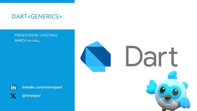 write a single piece of code that can work with many different data types. ❑ Enhanced Type Safety: Generics help to prevent errors by ensuring that the data types used in your code are compatible. This can lead to more robust and reliable code. ❑ Better Performance: The Dart compiler can generate more efficient code for generic functions and classes. 9