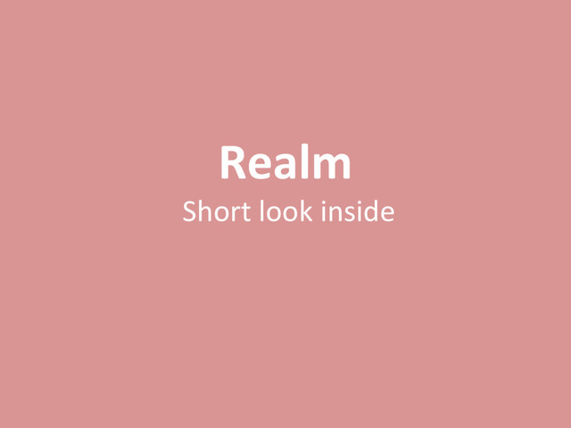 Java POJO User proxyUser = realm.copyToRealm(jUser); // Convert POJO to Proxy User proxyUser = realm.createObject(User.class); // Proxy // Query results are lazy RealmResults< User > queryResults = realm.allObjects(User .class); queryResults.get(0) != queryResults.get(0); // Different Java objects queryResults.get(0).equals(queryResults.get(0)); // Same data