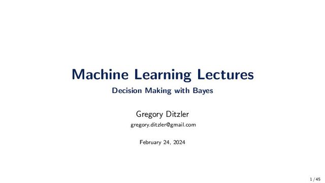 estimate a density in 1D to 24,000 samples in 3D! Imagine what happens if we went to 50D! The Curse of Dimensionality • The severe difficulty that can arise in spaces of many dimensions is sometimes called the curse of dimensionality (Bellman, 1961) • Bellman R. (1961) “Adaptive Control Processes.” Princeton University Press, Princeton, NJ. • Although this is now a power law growth, rather than an exponential growth, it still points to the method becoming rapidly unwieldy and of limited practical utility • You have been be warned, however, that not all intuitions developed in spaces of low dimensionality will generalize to spaces of many dimensions 31 / 45