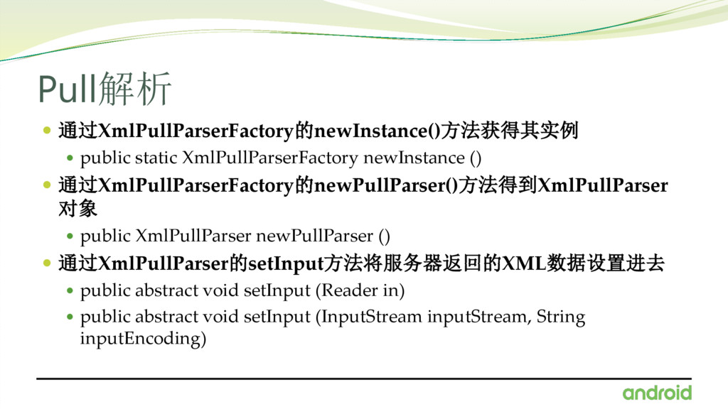 try { XmlPullParserFactory factory = XmlPullParserFactory.newInstance(); XmlPullParser parser = factory.newPullParser(); parser.setInput(inputStream,"UTF-8"); int eventType = parser.getEventType(); while (eventType != parser.END_DOCUMENT) { switch (eventType) { case XmlPullParser.START_TAG: if (parser.getName().equals("string")) { result = parser.nextText(); } break; } eventType = parser.next(); } } catch (Exception e) { e.printStackTrace(); } return result; }