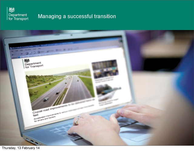 a successful transition begins early it does not finish with the move to GOV.UK will be looking more at what you can do better before during after Thursday, 13 February 14
