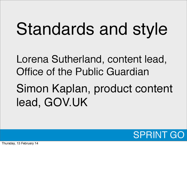 terms like ‘delivering’ (a policy agenda), ‘tackling’ (overcrowding), ‘empowering’ Simon SPRINT GO Thursday, 13 February 14 In working with the 24 departments whose content transitioned to GOV.UK, we discovered a number of terms that were commonly used - over-used - and that we believed were not plain English. This is particularly true in content from policy teams. By using these terms, they effectively shut out many users. “We lose trust from our users if we write government ‘buzzwords’ and jargon. Often these words are too general and vague and can lead to misinterpretation or empty, meaningless text. We can do without these words.” - style guide for GOV.UK How you structure your content depends on how people look at a page and what they concentrate on