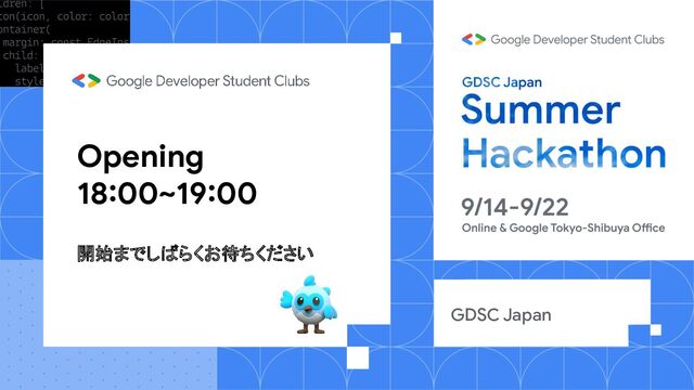 Opening 18:00~19:00 開始までしばらくお待ちください GDSC Japan