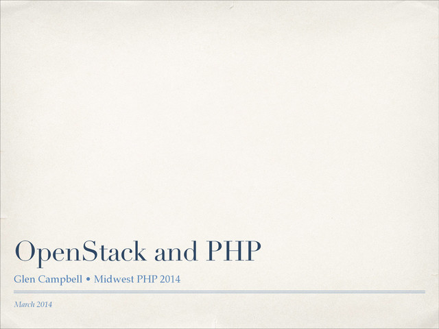 March 2014 OpenStack and PHP Glen Campbell • Midwest PHP