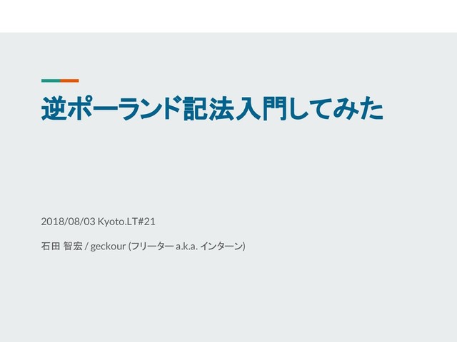 逆ポーランド記法入門してみた 2018/08/03 Kyoto.LT#21 石田 智宏 / geckour (フリーター a.k.a. インターン)