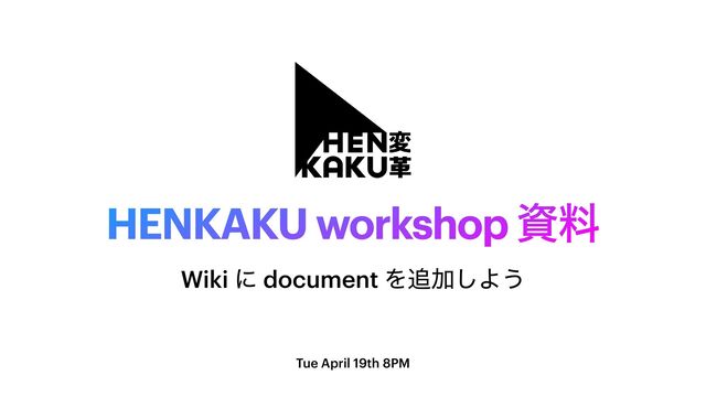 HENKAKU workshop ࢿྉ Tue April 19th 8PM Wiki ʹ document