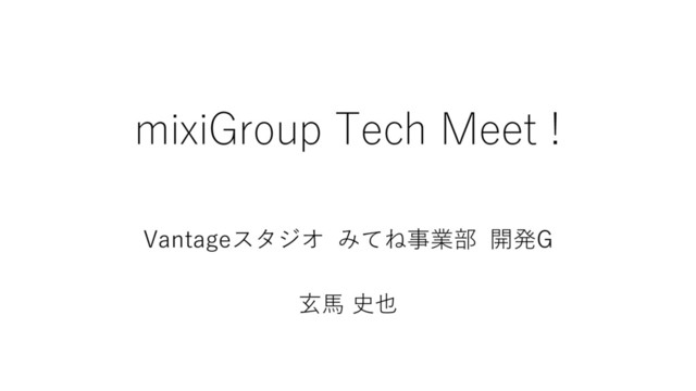 mixiGroup Tech Meet ! Vantageスタジオ みてね事業部 開発G ⽞⾺ 史也