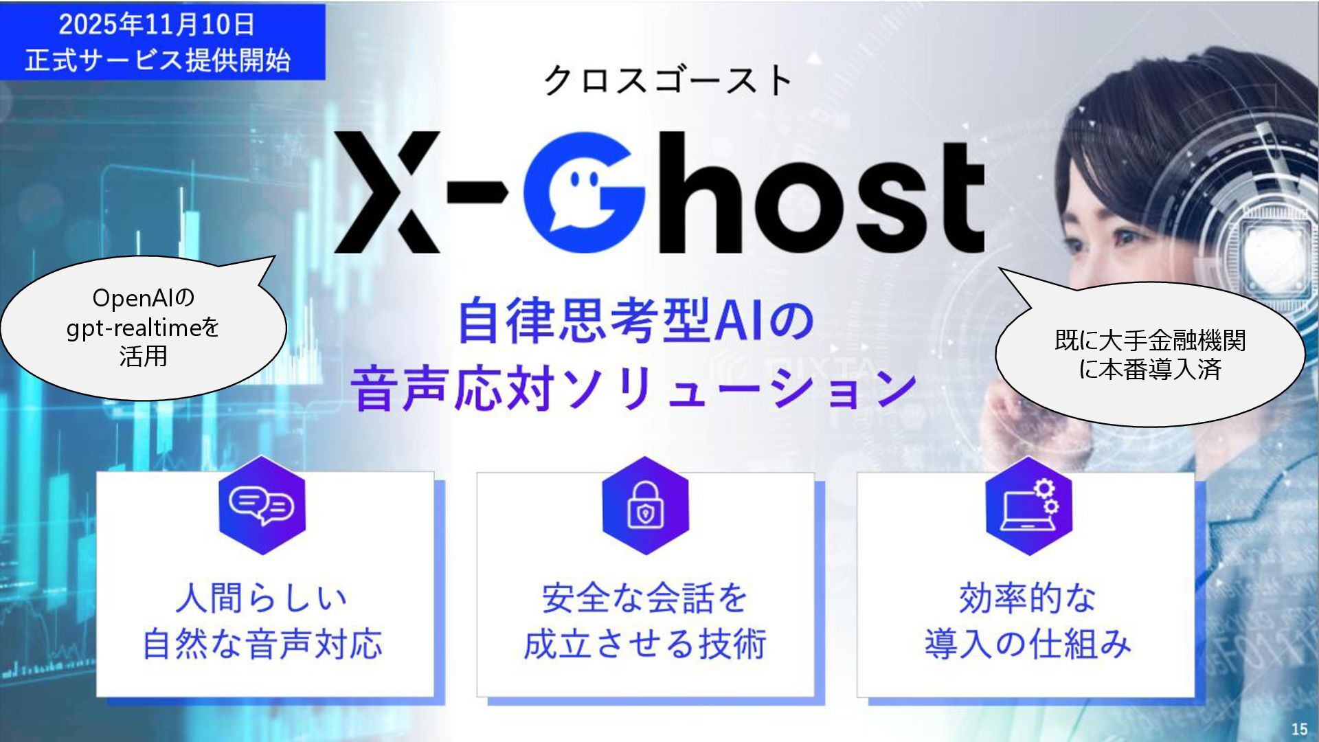 7 自律思考型の音声応対ソリューション「X-Ghost」 OpenAIの gpt-realtimeを 活用 既に大手金融機関 に本番導入済