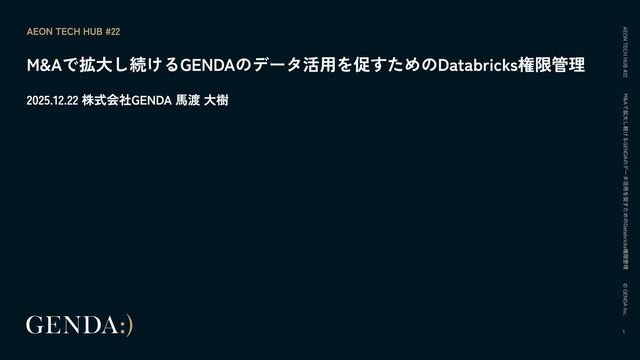 M&Aで拡大し続けるGENDAのデータ活用を促すためのDatabricks権限管理 / AEON TECH HUB #22