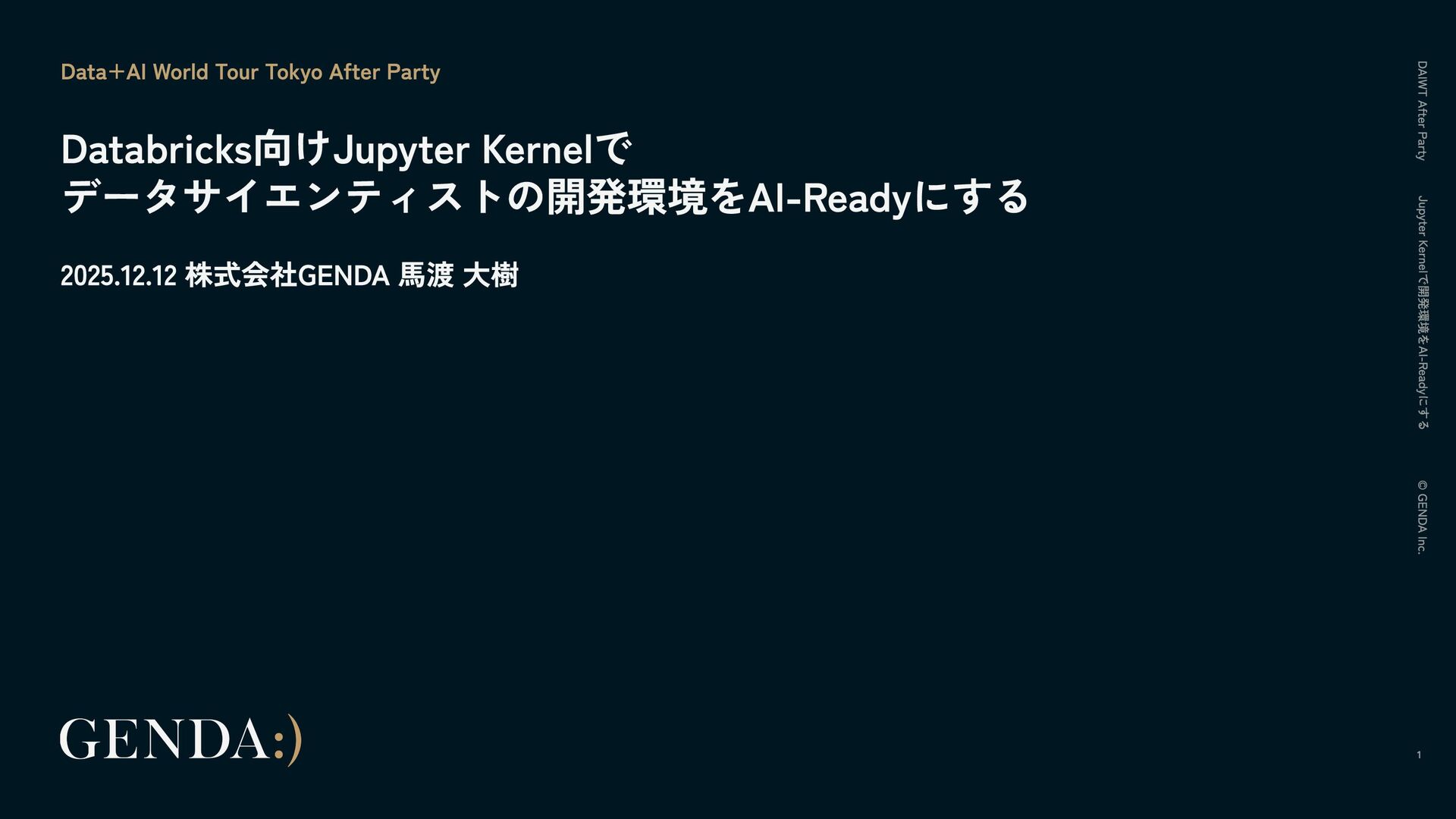 Databricks向けJupyter Kernelでデータサイエンティストの開発環境をAI-Readyにする / Data+AI World Tour Tokyo After Party
