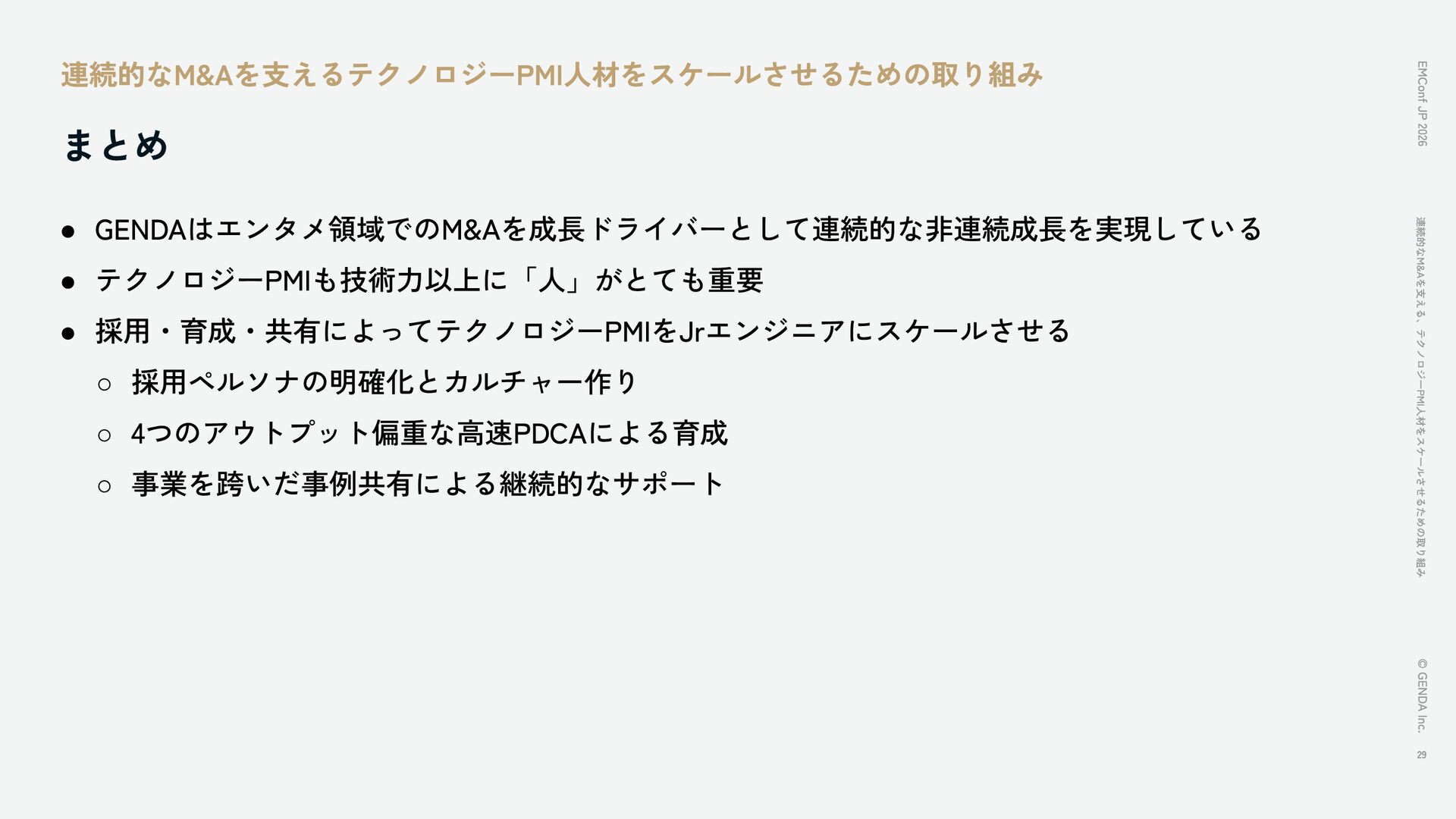連続的なM&Aを支える、テクノロジーPMI人材をスケールさせるための取り組み / EMConf JP 2026