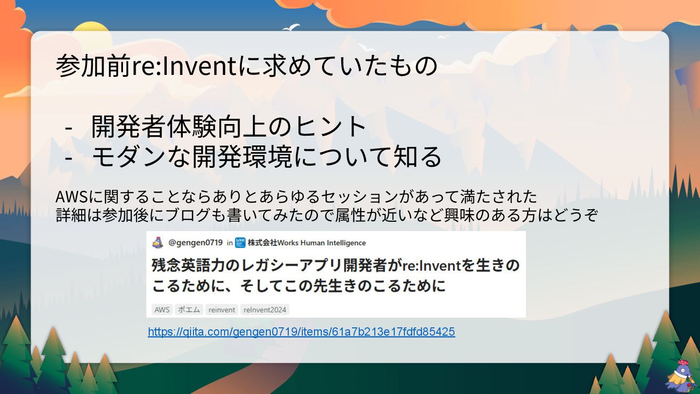 AWS re:Invent 2025 関西組 事前勉強会のLTでの発表資料です。