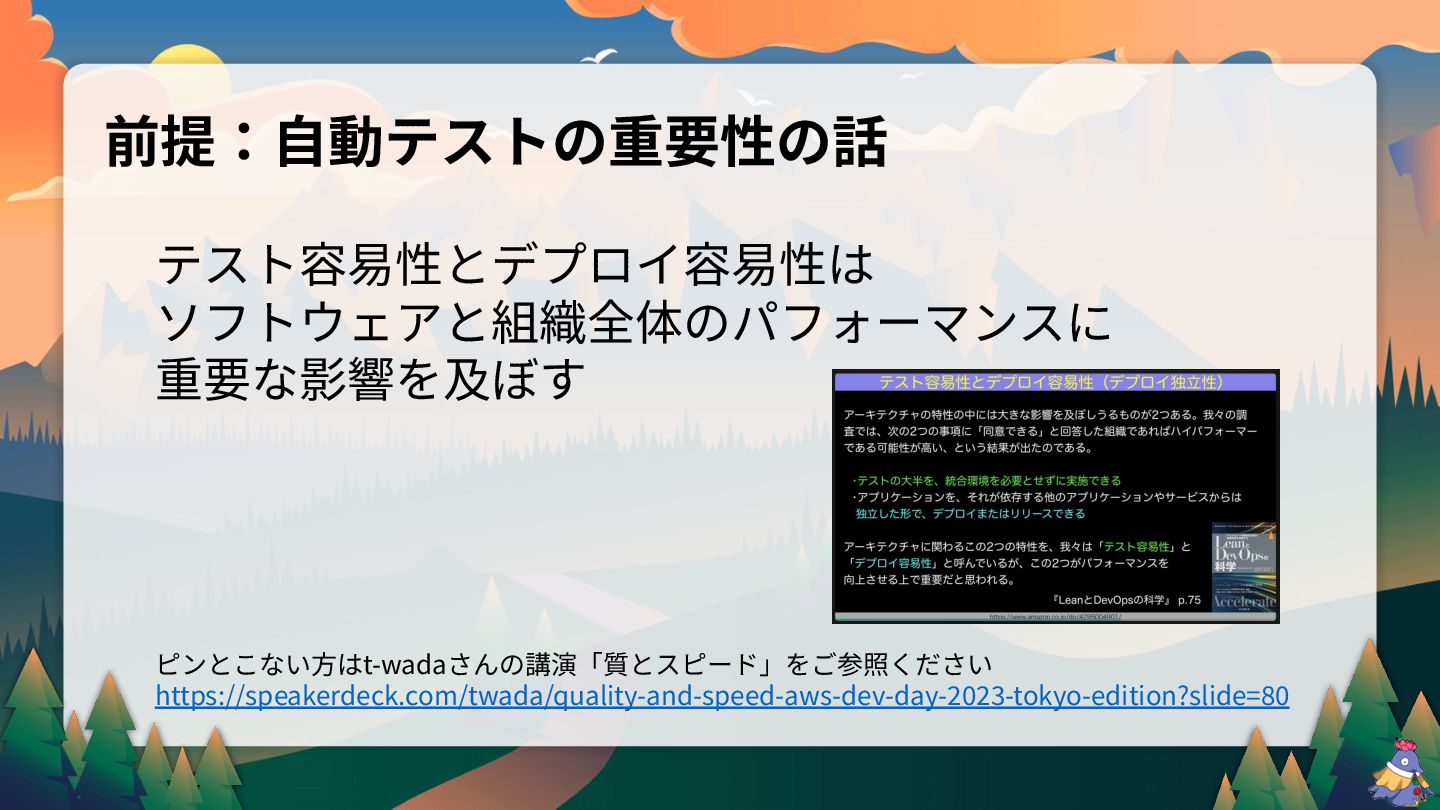 新規プロダクトを作っていくにあたって 打鍵テストを0にするという目標を目指して 取り組んできたその中で得た学びの一つのお裾分け