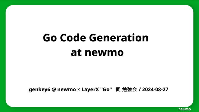 Go Code Generation at newmo / 2024-08-27 #newmo...