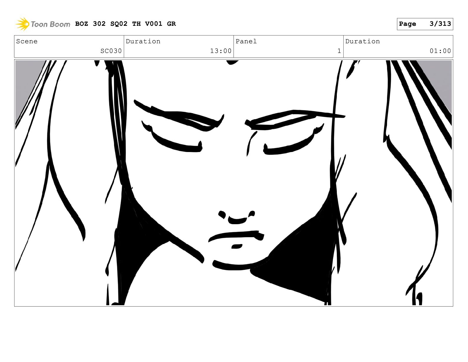 Scene SC030 Duration 13:00 Panel 1 Duration 01:00 BOZ 302