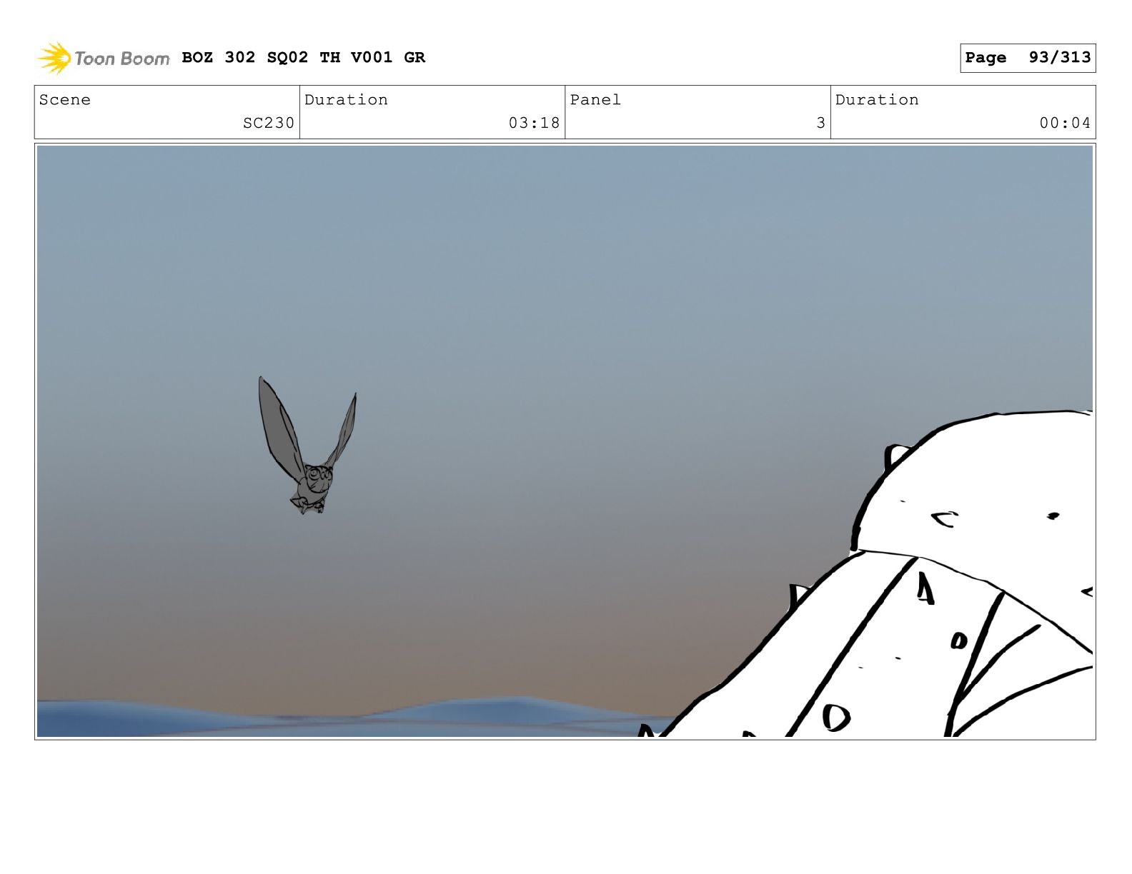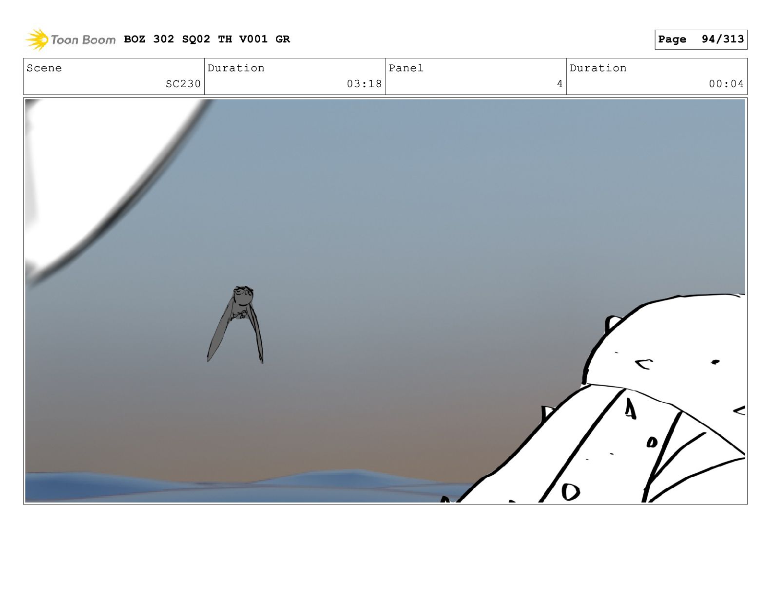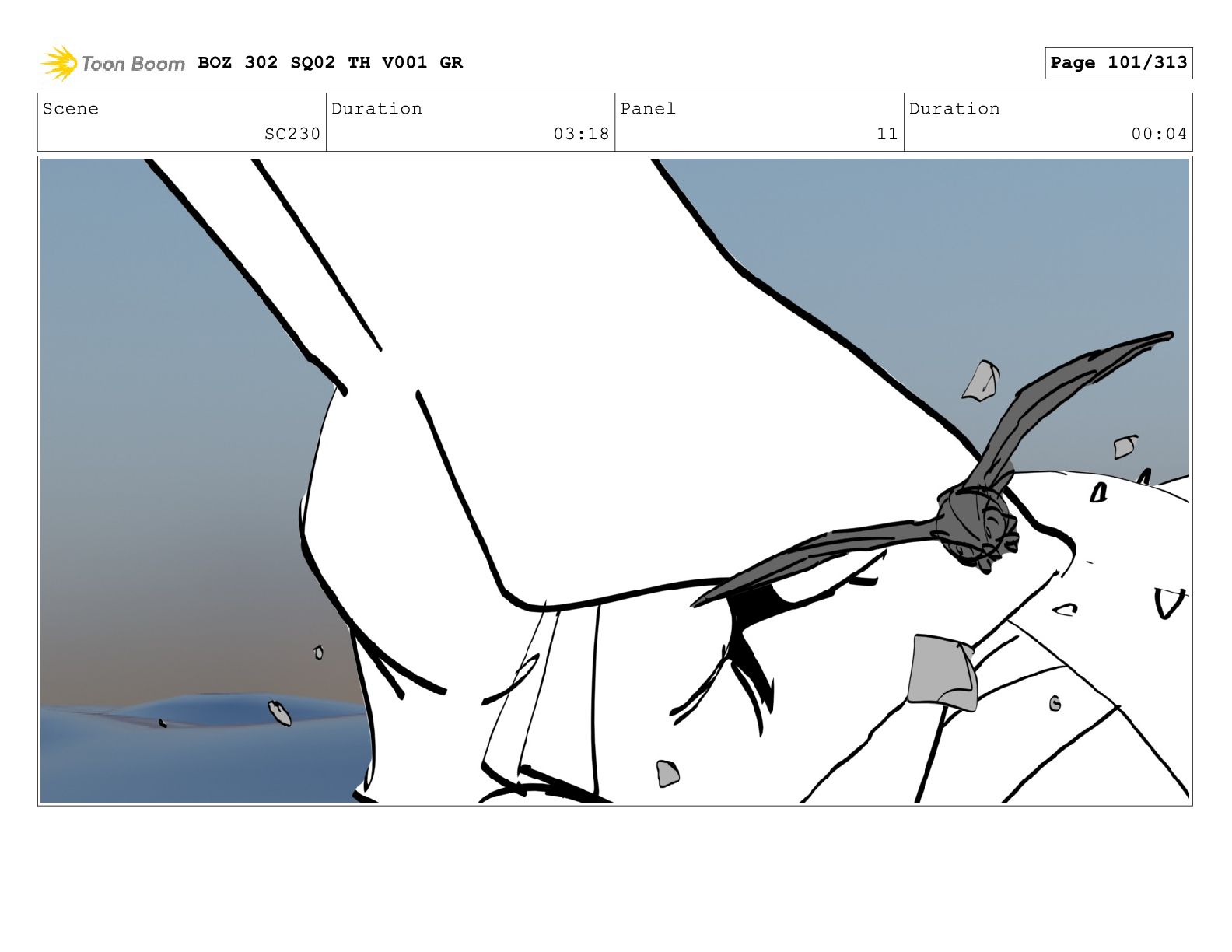 Scene SC040 Duration 02:16 Panel 4 Duration 00:20 BOZ 302